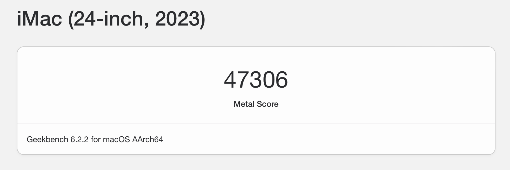 - Geekbench 6 GPU: 30506 pkt Open CL / 47306 Metal