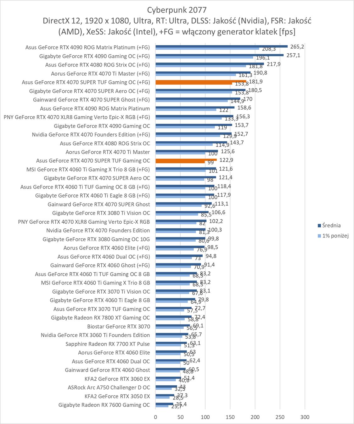 Test Asus GeForce RTX 4070 SUPER TUF Gaming OC – podsumowanie