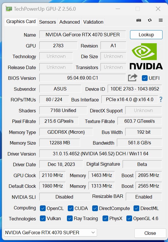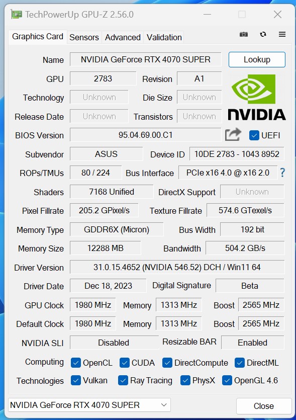 - RTX 4070 SUPER: Nvidia Game Ready 546.52