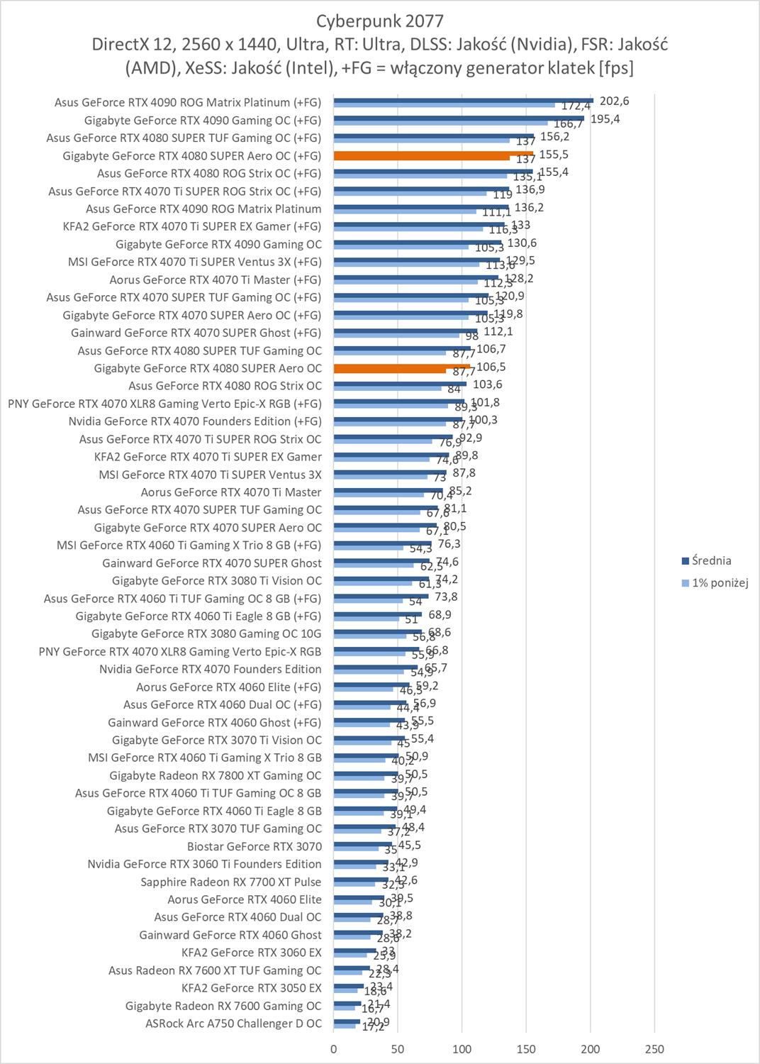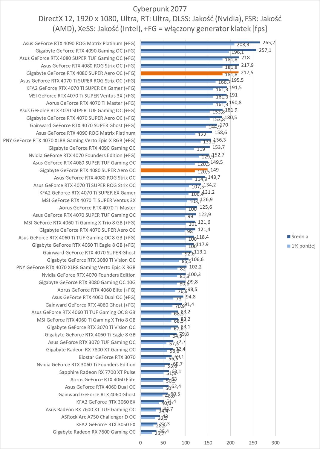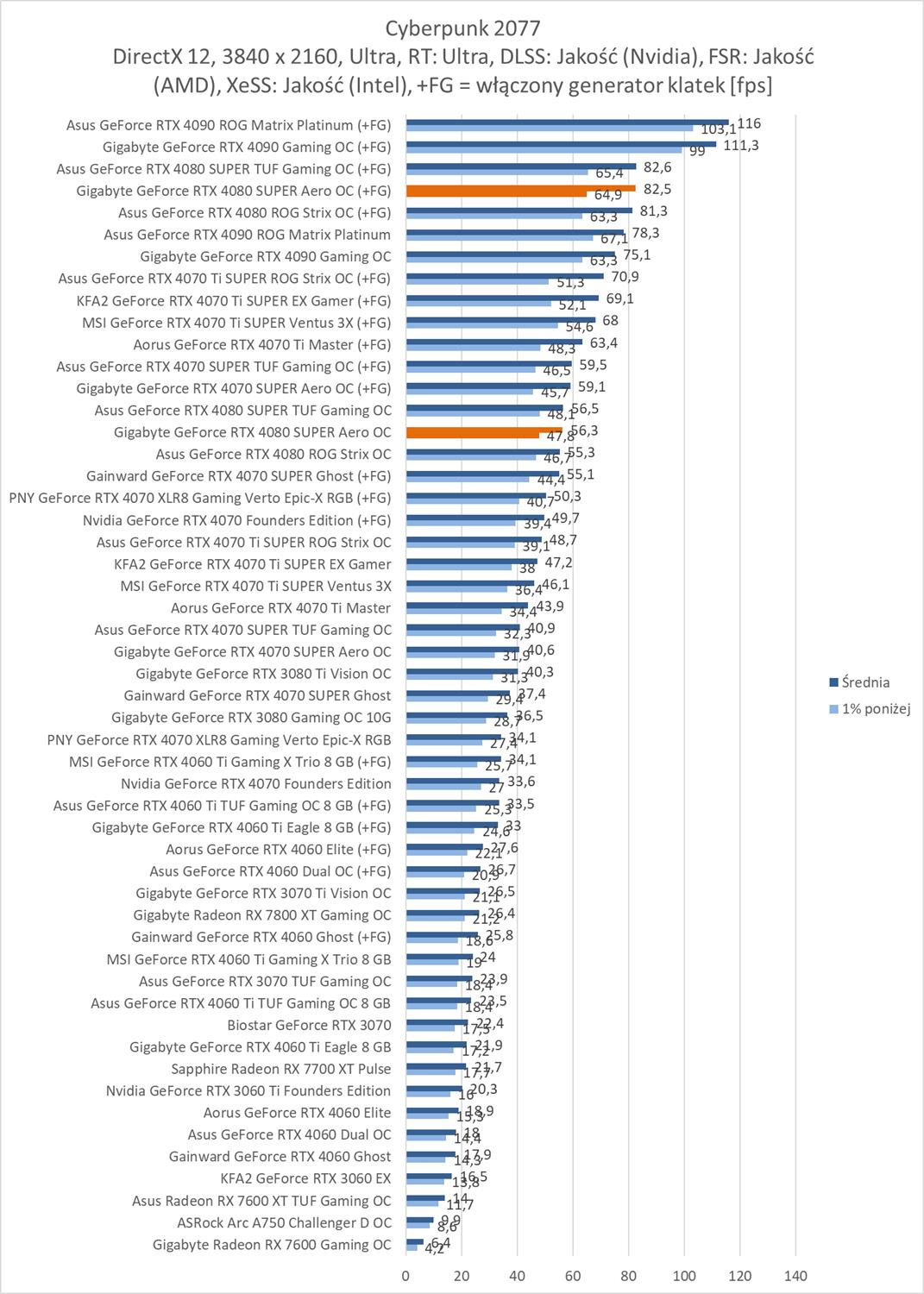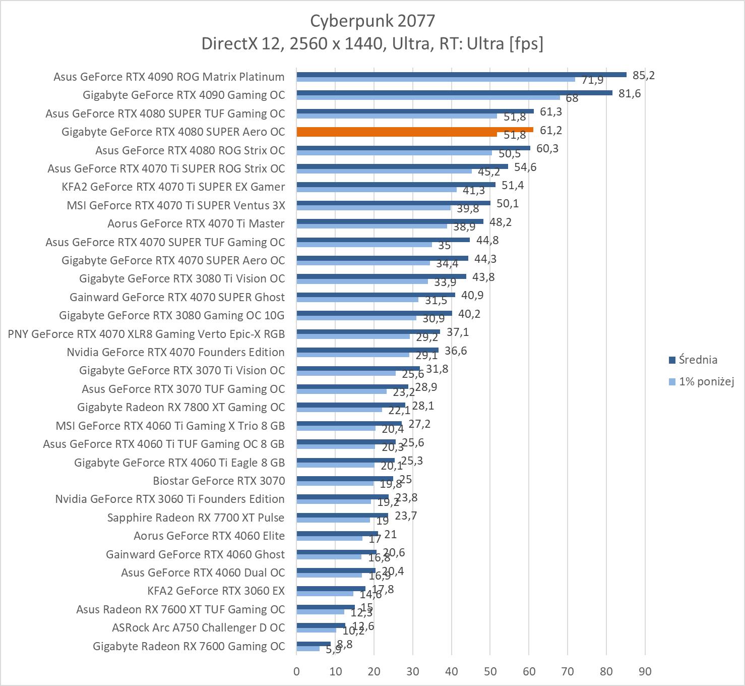 Test Gigabyte GeForce RTX 4080 SUPER Aero OC – podsumowanie