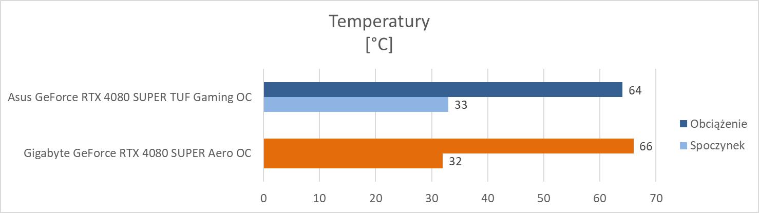 Gigabyte GeForce RTX 4080 SUPER Aero OC ma podwójny BIOS, ale pod obciążeniem przy obu temperatury są bardzo dobre.