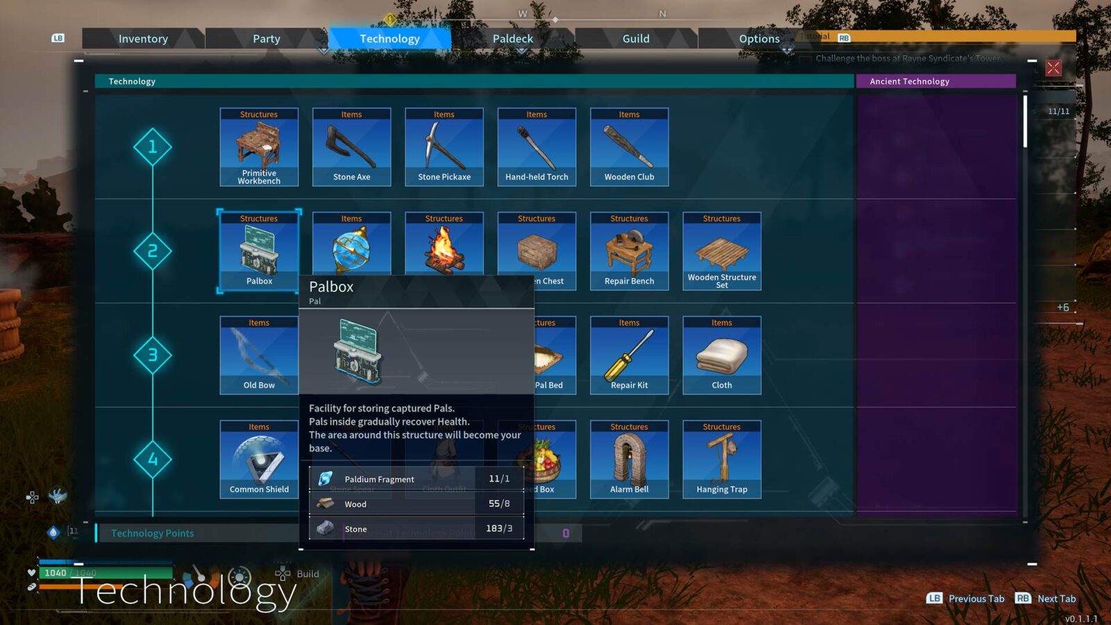 Za nasze działania otrzymujemy, poza doświadczeniem, punkty rozwoju technologicznego. Te są niezbędne, by budować kolejne elementy ważne dla naszego otoczenia. Od fundamentów pod dom, przez narzędzia do zdobywania zasobów, kończąc na fortyfikacjach oraz meblach – na wszystko wydajemy punkty technologii. Istnieje też drugi rząd rozwoju technologicznego, do którego będziemy potrzebowali antycznych zasobów oraz osobnej puli punktów otrzymywanych za pokonywanie najtwardszych przeciwników (zaznaczonych na mapie). Poza tym nawet, jeśli będziemy znali schemat budowy, nadal potrzebujemy zasobów.