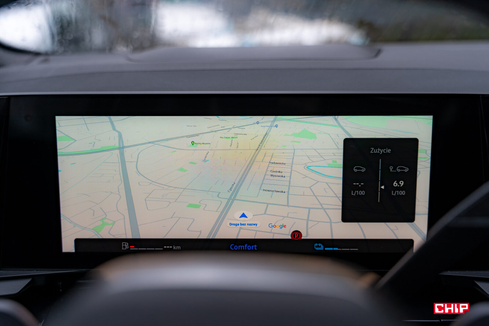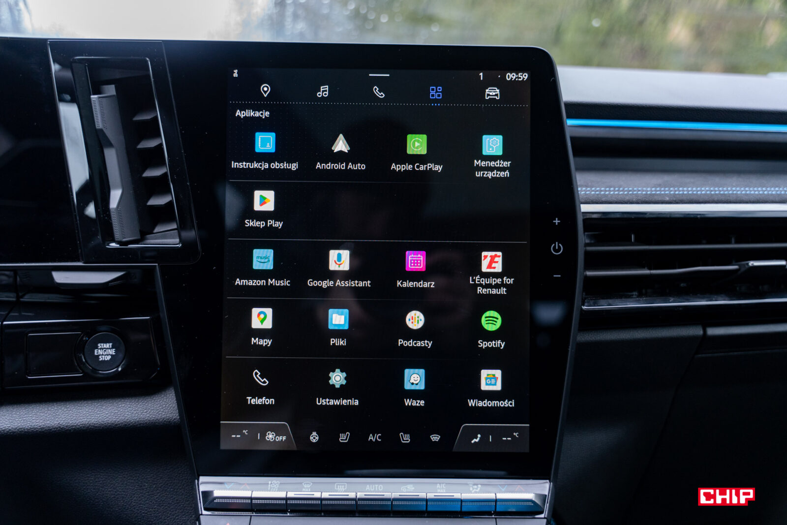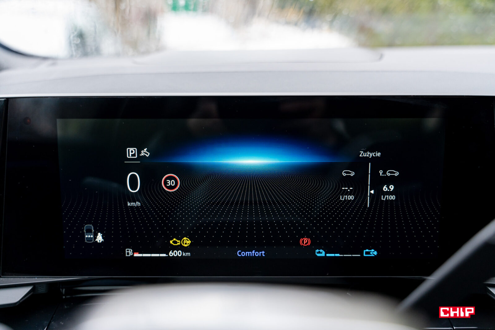 Wspominałam wcześniej o prawie 25 calach ekranów, więc rozwińmy ten temat. Mamy tutaj 12,3-calowy wyświetlacz wskaźników i 12-calowy wyświetlacz centralny. Oba oferują wysoką jakość wyświetlanych obrazów, oba są proste w obsłudze. Prostota ta jest w dużej mierze zasługą Android Automotive. Arek wielokrotnie opisywał szczegółowo zalety tego systemu przy innych modelach Renault, więc odsyłam Was do tych tekstów, ze swojej strony wspomnę tylko, że system ten w zasadzie eliminuje konieczność dotykania smartfona.