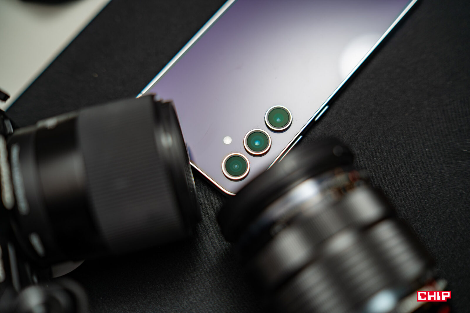 Z tyłu mamy kolor, jeden z kilku do wyboru w pastelowych odcieniach. Wygląda to dobrze pod taflą szkła. Minusem tylnego panelu są wystające obiektywy aparatów. Przez co smartfon na blacie zawsze leży krzywo, a przy próbie obsługi w ten sposób cała obudowa, jak mawia u nas Konrad Koterba, żabkuje. Wokół obiektywów zbiera się kurz, ale mam wrażenie, że Samsung minimalnie zwiększył odstępy pomiędzy nimi, bo nie są to hurtowe ilości i dosyć łatwo można go wydmuchać.