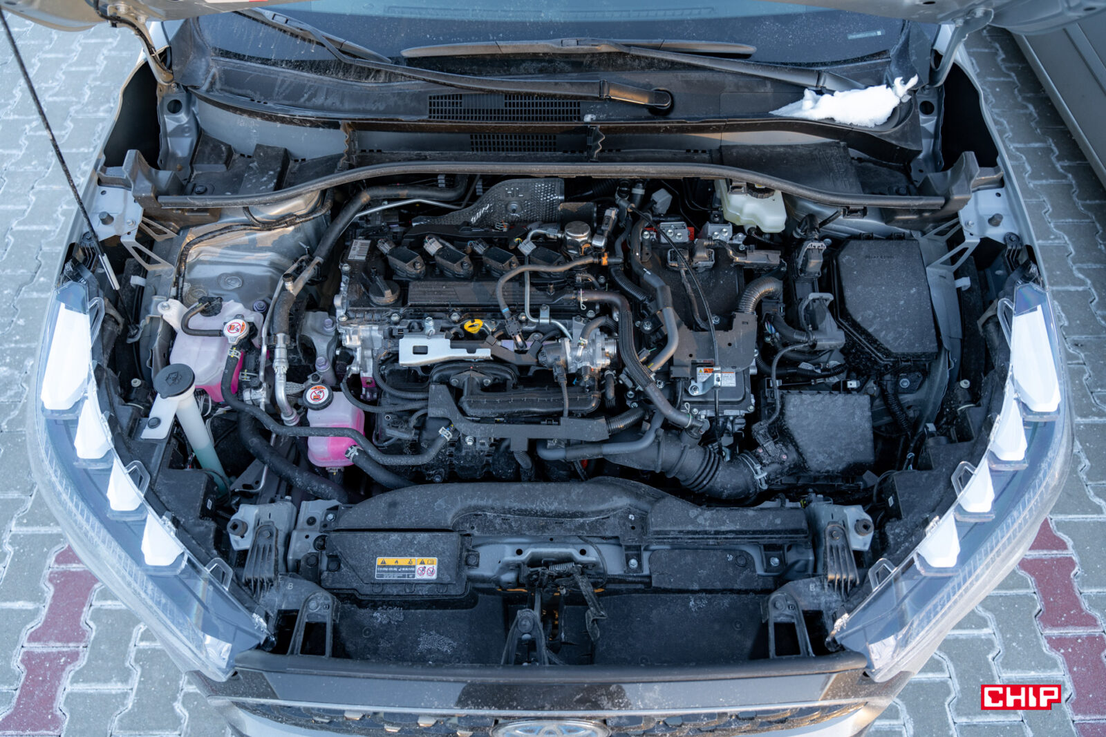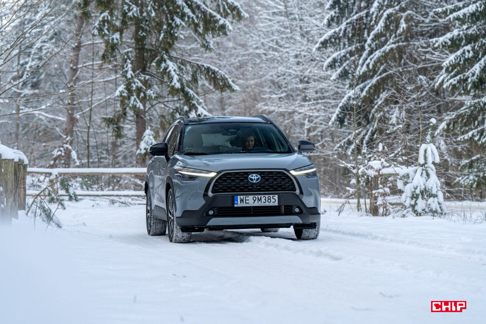 Napęd AWD-i będzie znany właścicielom RAV4, ale wyjaśnijmy go pokrótce pozostałym. W normalnych warunkach Corollę Cross napędza przednia oś, jednak jeżeli auto uzna, że ma do czynienia z ograniczona trakcją (śnieg/lód/deszcz/etc.), samo dołączy tylną oś i będzie na nią przekazywało tyle mocy, ile uzna za stosowne w danych warunkach (nawet do 60% dostępnej mocy). Dzieje się to bez udziału kierowcy, więc kolejna rzecz z głowy. Ponieważ podczas testu mieliśmy paskudne warunki, auto niejednokrotnie dołączało tylną oś i muszę przyznać, że dało się wyczuć różnicę w prowadzeniu, było nieco ociężałe, ale bardziej stabilne. W sam raz na zimę w pełni.