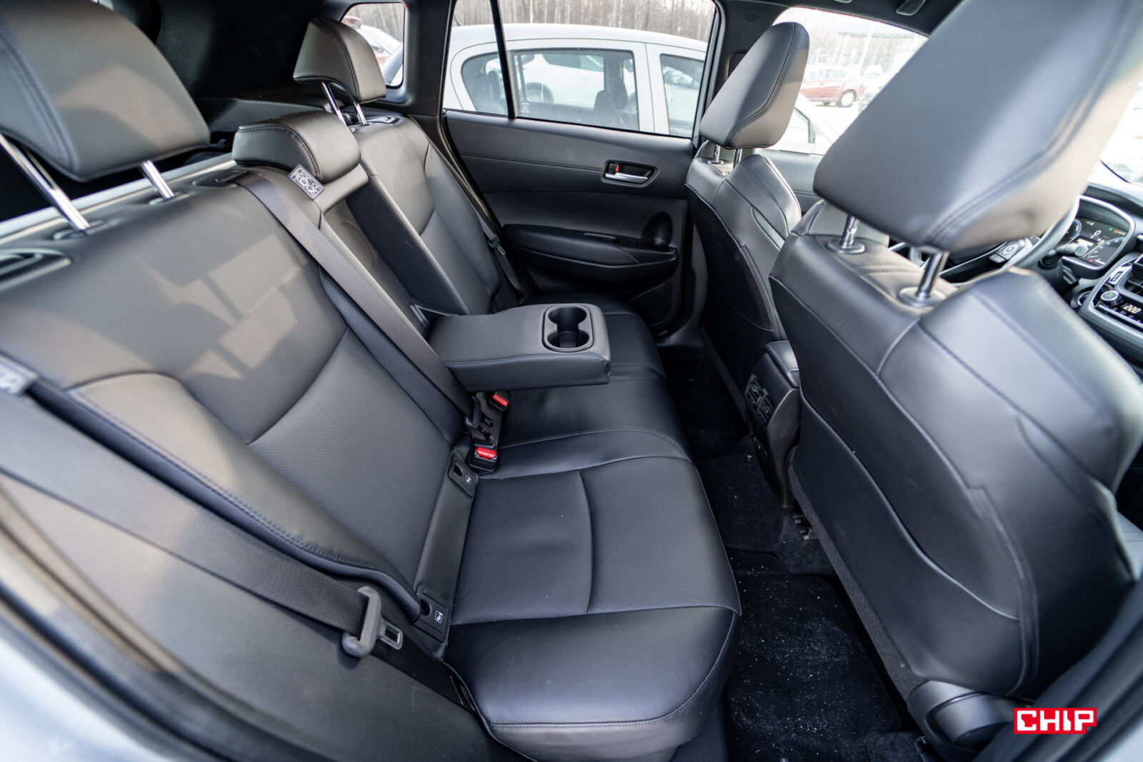 Na tylnej kanapie, optycznie jest ciasno. Corolla Cross ma te same, bardzo rozbudowane przednie fotele co wariant klasyczny, które wizualnie zajmują bardzo dużo miejsca. Ale jak już usiądziemy okazuje się, że miejsca na nogi nie ma wcale tak mało, jak może się wydawać. To zasługa wysoko zamocowanych foteli przednich, pod które można łatwo wsunąć stopy. Trzy osoby na krótszej trasie przeżyją, ale bez przytulania się nie obejdzie.