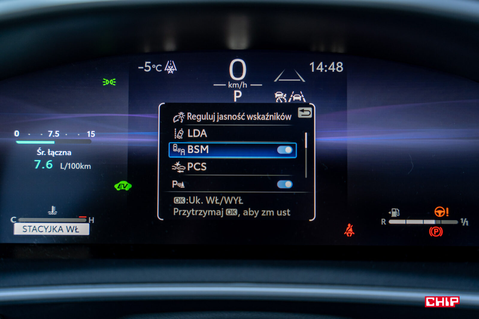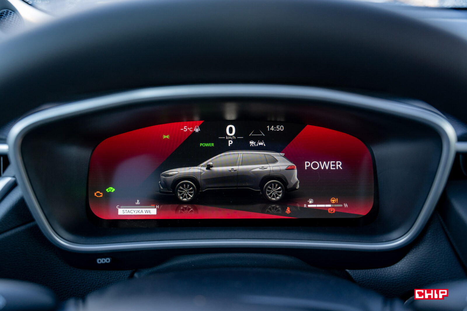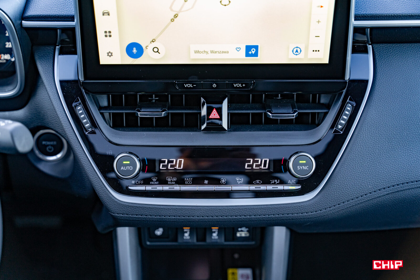 Elementami, które wprowadzają tak bardzo potrzebny Toyotom powiew świeżości, są ekrany. Mamy tutaj 12,3-calowy cyfrowy wyświetlacz tablicy wskaźników i 10,5-calowy ekran dotykowy. Wyświetlacz tablicy wskaźników oferuje kilka ciekawych widoków, które wybiera się z pozycji kierownicy. Co ważne – to tutaj zaszyto regulację ustawień systemów asystujących. Układ ostrzegania o niezamierzonej zmianie pasa ruchu, układ wczesnego reagowania w razie ryzyka zderzenia i wiele innych – jeżeli chcecie to włączyć/wyłączyć/zmienić ustawienia, nie zrobicie tego z poziomu ekranu dotykowego. Te funkcje będą widoczne na wyświetlaczu tablicy wskaźników, natomiast do ich modyfikacji służą przyciski na kierownicy. O ile nie jest to problematyczne, bo menu wskaźnika jest proste i przejrzyste, o tyle nie zaszkodziłoby wrzucenie tego również w centralnie umieszczony ekran dotykowy. Jestem zwolenniczką wysługiwania się pasażerem w jak największym zakresie, więc miło byłoby mieć możliwość wydania mu polecenia zamiast bawienia się menu podczas jazdy.