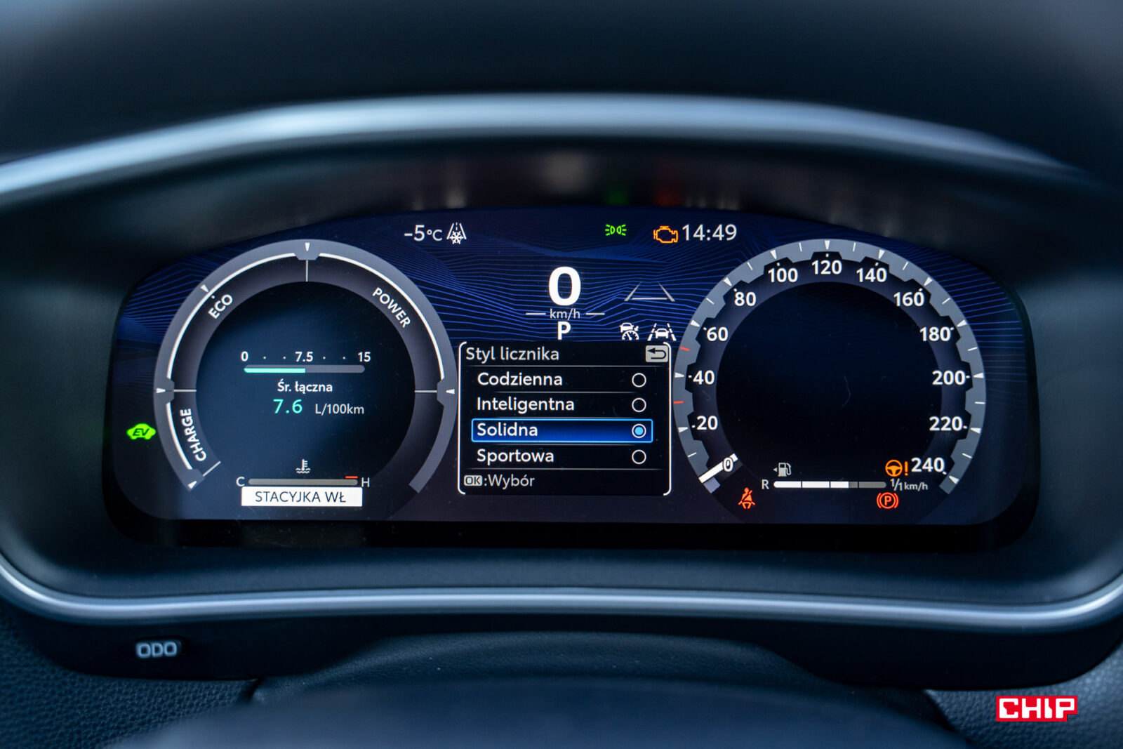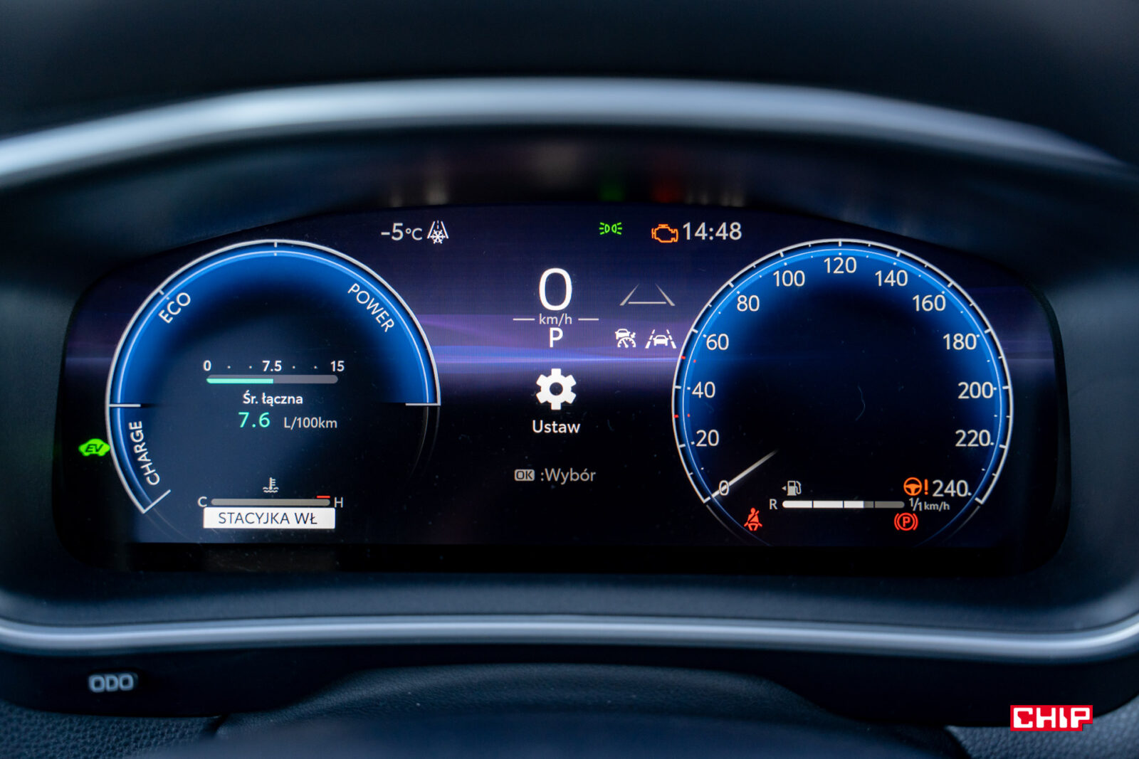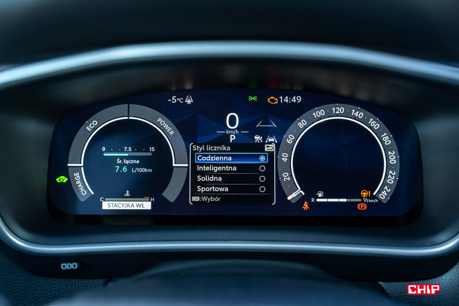 Na zużycie prądu wpływał również tryb jazdy. Możemy wybierać między Normal, Eco i Sport, a ponieważ nazwy mówią same za siebie, nie będę ich rozwijać. Jak się zapewne domyślacie, największy udział silnika spalinowego mamy w trybie Sport, a najmniejszy – w Eco, jednak ponieważ jeździłam przede wszystkim w trybie Normal (auto było zbyt ociężałe w Eco, a Sport przydawał się jedynie okazjonalnie), to właśnie w tym ustawieniu mierzyliśmy spalanie: