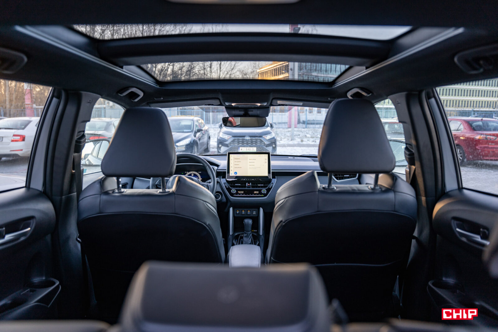 Z perspektywy pasażera wygląda to nieco gorzej – podczas testu klasycznej Corolli Arek narzekał na wysunięty schowek, o który co chwila obijał kolana. W wariancie Cross jest więcej miejsca, a schowek nie jest aż tak wysunięty, ale mimo wszystko pierwszym, co usłyszałam, kiedy Arek wsiadał, to głuche stuknięcie i tekst: „K****, ten sam schowek…”. Cóż, rzeczywiście, osoby o wzroście 180+ muszą albo porządnie odsuwać sobie fotel, albo bardzo uważać, bo inaczej może boleć.