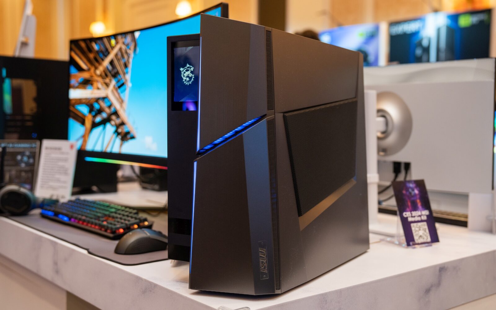 Jak co roku MSI ulokowało się w przestrzeni hotelu The Venetian, by z jego pomieszczeń promować najróżniejsze produkty. W tym tekście skupię się przede wszystkim na jednostkach stacjonarnych, bowiem te świeciły najjaśniej w korytarzach, gdzie firma pokazywała kilkadziesiąt produktów. Trzeba dodać – produktów o bardzo szerokim spektrum. Ja skupię się na tym, co dostarczy nam najwięcej mocy i zabawy – komputerach i monitorach. Co nowego u MSI?