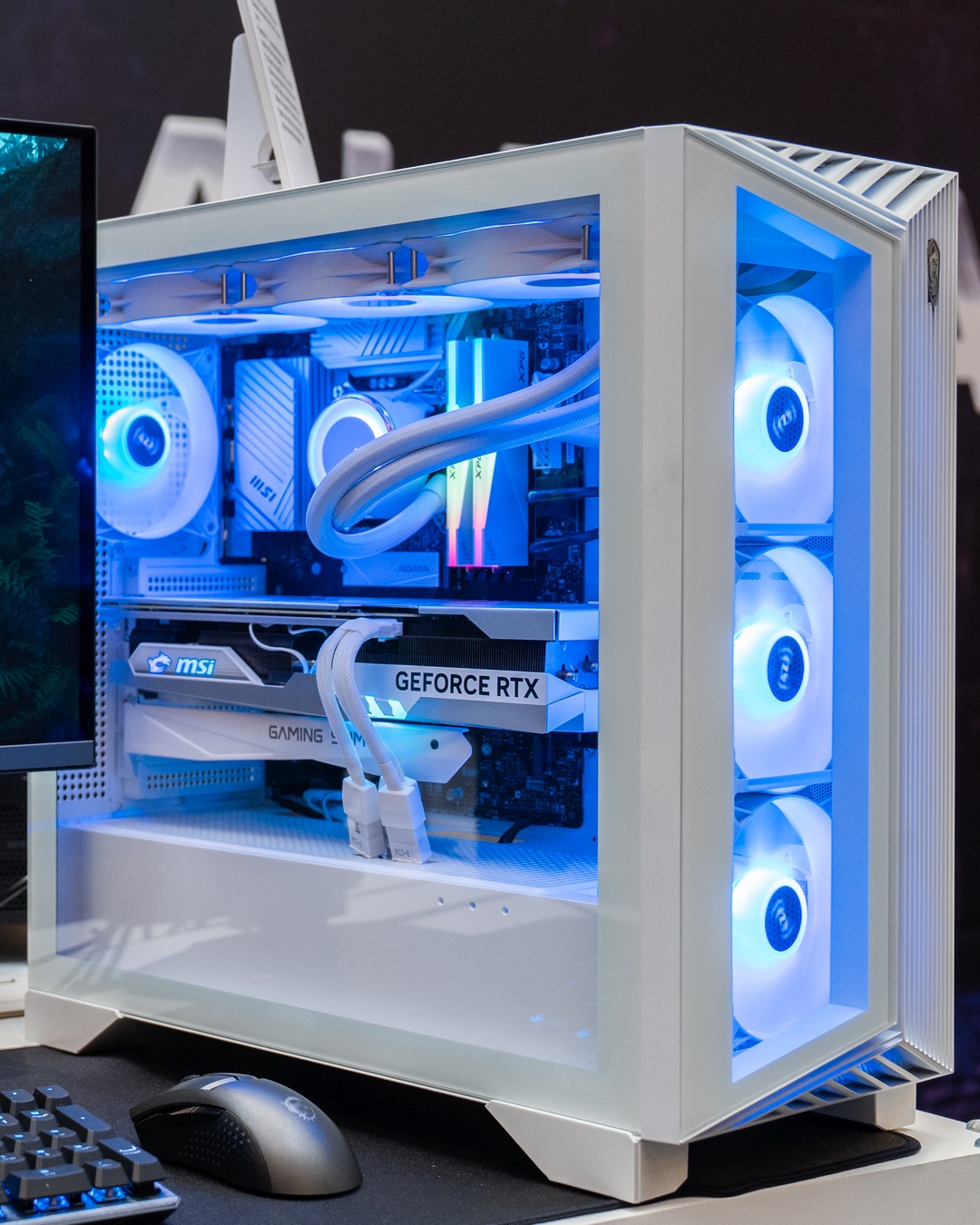 W moje oko wpadł też komputer wyglądający nieco bardziej klasycznie, o ile można tak mówić o białych propozycjach z RGB. W linii MSI MPG pojawił się Aegis RS2. Niegdyś w serii Aegis producent starał się tworzyć komputery na bardzo dziwnych podstawach, ale tym razem postawił na coś prostszego. Bynajmniej nie słabszego – w środku gościć może Intel Core i9, RTX 4080 i nawet 32 GB RAM-u DDR5. To wszystko zadziała z Wi-Fi 7, więc na prędkość nie powinniśmy narzekać.