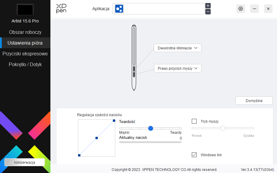 Dostępna do pobrania aplikacja XPPen to przykład po prostu dobrze zaprojektowanego i stworzonego oprogramowania, które wykłada się jedynie na tłumaczeniu. W języku polskim albo zadziałał tłumacz Google, albo nieco “wczorajsza” sztuczna inteligencja, ale jest to już uszczypliwość po mojej stronie, bo pomijając kuriozalne określenia pokroju “wstrzykiwacza”, czy “kierowcy” większość opcji można bezproblemu zrozumieć. Tych oczywiście jest sporo, ale większość z nich sprowadza się do standardu pokroju regulacji czułości i charakteru nacisku oraz dostosowywania obszaru roboczego wraz z opcjami zmiany temperatury barwowej.