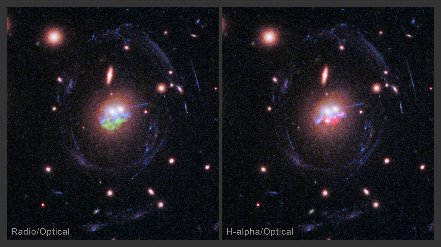 Poza tym astronomowie zwrócili uwagę na zimny i ciepły gaz znajdujący się w pobliżu tej wnęki. Być może część rozgrzanego gazu, za którego wypchnięcie odpowiadała czarna dziura, uległa ostatecznemu ostygnięciu. Tak powstały różne jego pokłady, a efekty pływowe będące pokłosiem łączenia się dwóch galaktyk doprowadziły do kompresji tego gazu wzdłuż zakrzywionych ścieżek. Tak utworzyły się gromady gwiazd ułożone w koralikowy wzór.