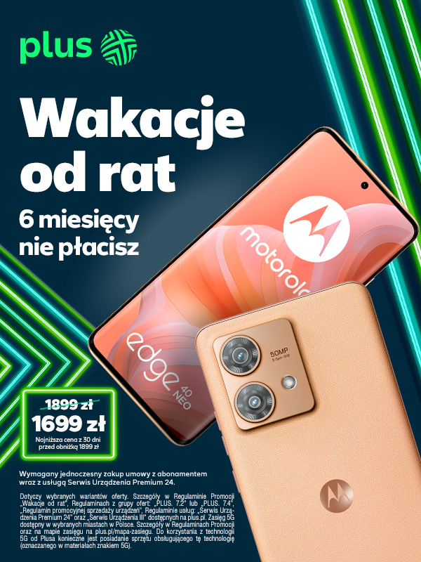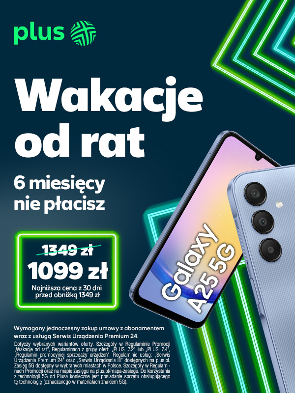 Pamiętajcie też, że w Plusie wciąż obowiązuje promocja na dwa abonamenty w cenie jednego, z której możecie skorzystać kupując smartfon w ramach oferty Wakacje od rat. Operator oferuje dwa abonamenty za 69 zł miesięcznie przez rok z rabatami, następnie 129 zł miesięcznie z rabatem, z pakietem 240 GB do wspólnego korzystania. Oczywiście w ramach obu numerów mamy dostęp do nielimitowanych rozmów, SMS-ów, MMS-ów oraz superszybkiego internetu 5G od Plusa.