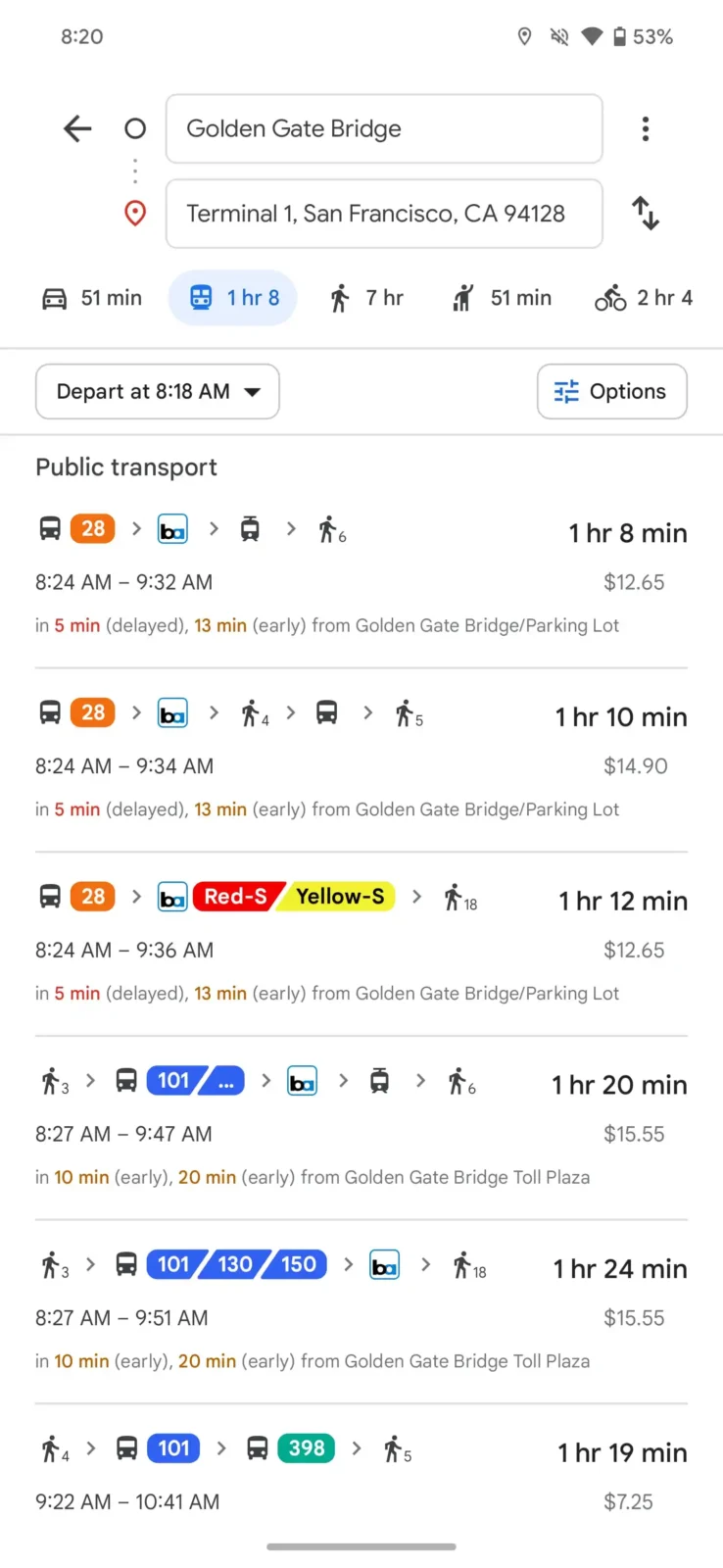 Kolejna zmiana to wyświetlanie tras i lokalizacji również w osobnych kartach, co ma umożliwić lepsze zachowanie porządku. Znacznemu usprawnieniu uległo także planowanie tras – jest ono teraz bardziej przejrzyste i podczas pokazywania czasu podróży wyświetla również mapę wraz z informacjami. Kolejny przykład poniżej – po lewej stara wersja, po prawej nowa. Trzeba przyznać, że nowa rzeczywiście lepiej wygląda.