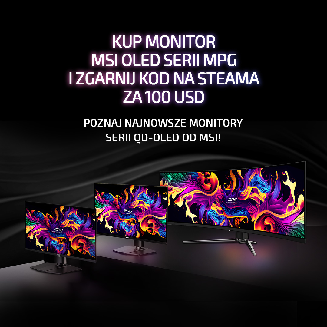 MSI wie, jak zachęcić graczy do zapoznania się ze swoimi najnowszymi monitorami z serii MSI QD-OLED. Przygotowano bowiem świetną promocję, w ramach której za zakup monitora MSI OLED serii MPG można zgarnąć kod na Steama za 100 dolarów. To całkiem sporo pieniędzy, które można wydać na nowe gry.