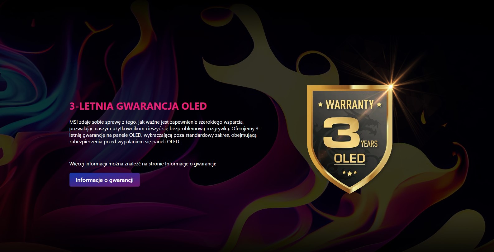 By móc bez przeszkód cieszyć się rozgrywką, bez martwienia się o ewentualne usterki i naprawy, za które trzeba płacić, MSI przygotowało na te modele 3-letnią gwarancję OLED.