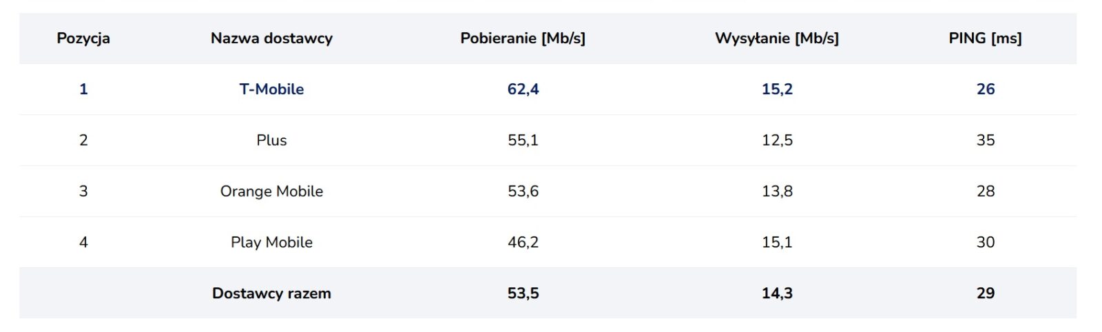 Z czasem i te wartości będą rosnąć. Wynika to z jednej strony z podbijania średniej pomiarami w nowej sieci 5G. Z drugiej użytkownicy przechodzący na nowe częstotliwości odtykają sieć LTE, która tym samym też się nieco rozpędza.