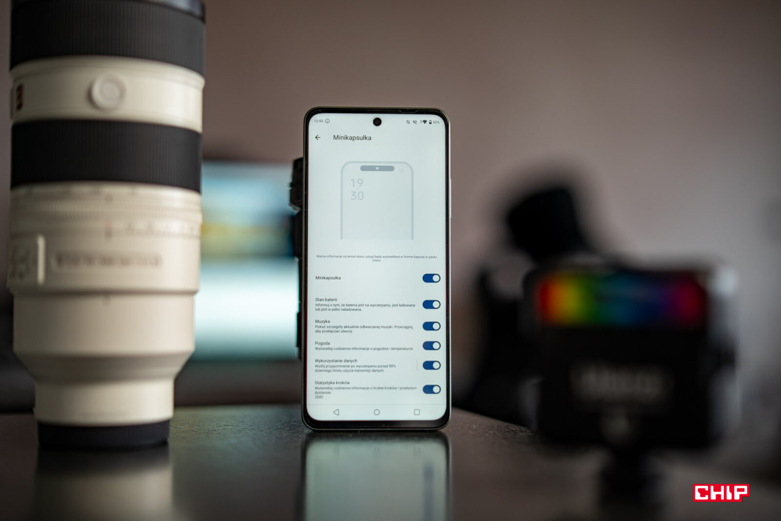 realme C67, podobnie jak poprzednik, dostał tzw. Minikapsułkę, czyli coś, co przypomina Dynamic Island w iPhone’ach 15. Przypomina, bo nie jest wyświetlana cały czas i przyznaję, że na początku się zastanawiałem – po co? Po dłuższym czasie uważam, że ma to sens i jest dobrą formą wyświetlania powiadomień. Pojawia się, pokazuje co ma pokazać i znika.
