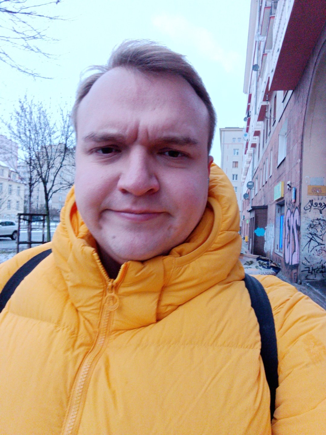 Zdjęcia z przedniego aparatu wychodzą dobrze tylko w jasnym słońcu. Nawet to nie zagwarantuje jednak dużej szczegółowości, a dobry balans bieli także bywa kwestią wygrania na loterii. Czasem, zwłaszcza gdy jest ciemniej, twarz staje się zbyt sina lub czerwona. Odcięcie w trybie portretowym jest, ale nie ma co na nie liczyć na dokładne rozprawienie się z włosami czy nawet brzegami obrysu. Selfie ma w sobie dużo szumów. Dobrze działa HDR, który potrafi zachować rozpiętość tonalną, gdy robimy zdjęcie pod światło, ale to tyle.