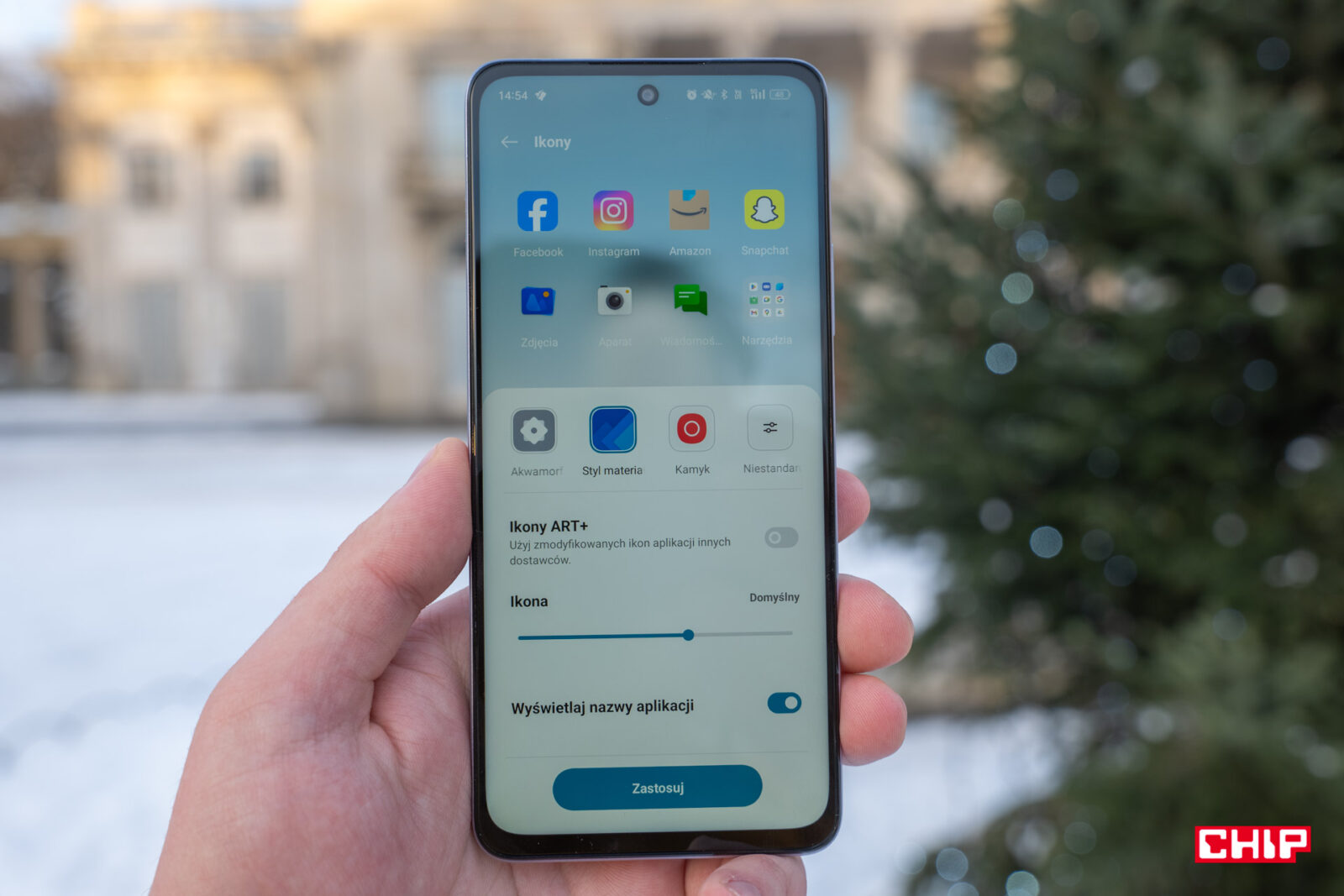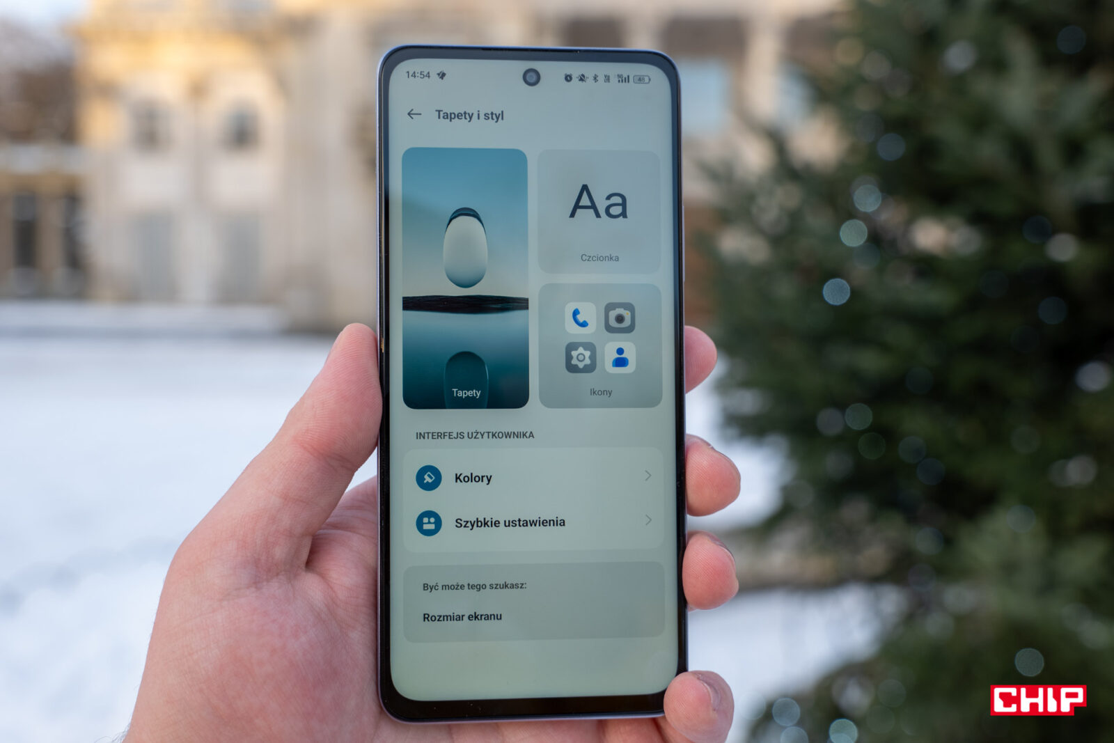 Jako, że to smartfon do 1000 zł z matrycą IPS, nie znajdziemy tu rozwiązań z ekranem zawsze aktywnym. Okrojono go także z opcji tworzenia tapet na bazie kolorów z naszych zdjęć i nie wgrano do niego ruchomych tapet. Nie zabrakło za to narzędzi zmieniających kształty ikon oraz przycisków wysuwanych z panelu z powiadomieniami, a także personalizacji pulpitów razem z przejściami czy ilością ikon. Jest tego trochę, natomiast wizualnie zmiany postępują bardzo powoli i całość zaczyna wyglądać ociężale.