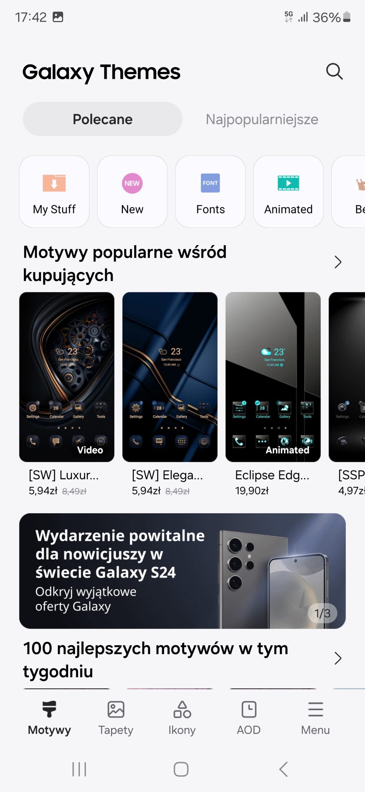 System wizualnie nie uległ większym zmianom w stosunku do zeszłego roku – pełną listę zmian można zresztą sprawdzić w tekście Joasi – biorąc smartfon do ręki, nie ma żadnych wątpliwości, że to sprzęt ze stajni Samsunga, tylko poddany pewnej kosmetyce. Oczywiście tak jest tylko domyślnie – OneUI pozwala na daleko idącą personalizację wyglądu za pomocą gotowych motywów lub „na piechotę”, a to, co otrzymamy w efekcie, zależy głównie od naszej fantazji. Co ciekawe, motywami można także zmienić wygląd AoD – przyznaję, że nie pamiętam, czy tak było także w zeszłorocznej edycji oprogramowania.
