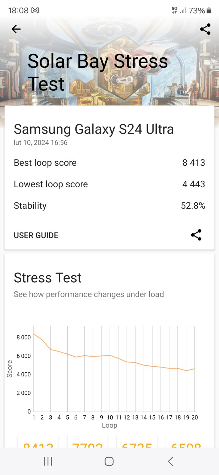 - Solar Bay Stress Test: 8413/4443 pkt, stabilność 52,8%