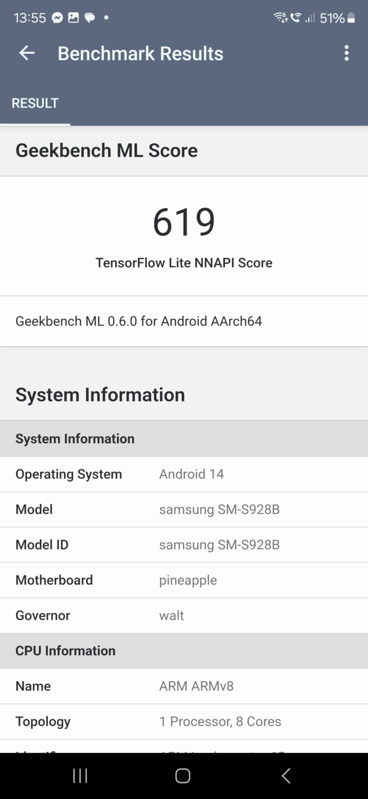 - Geekbench ML NNAPI: 619 pkt