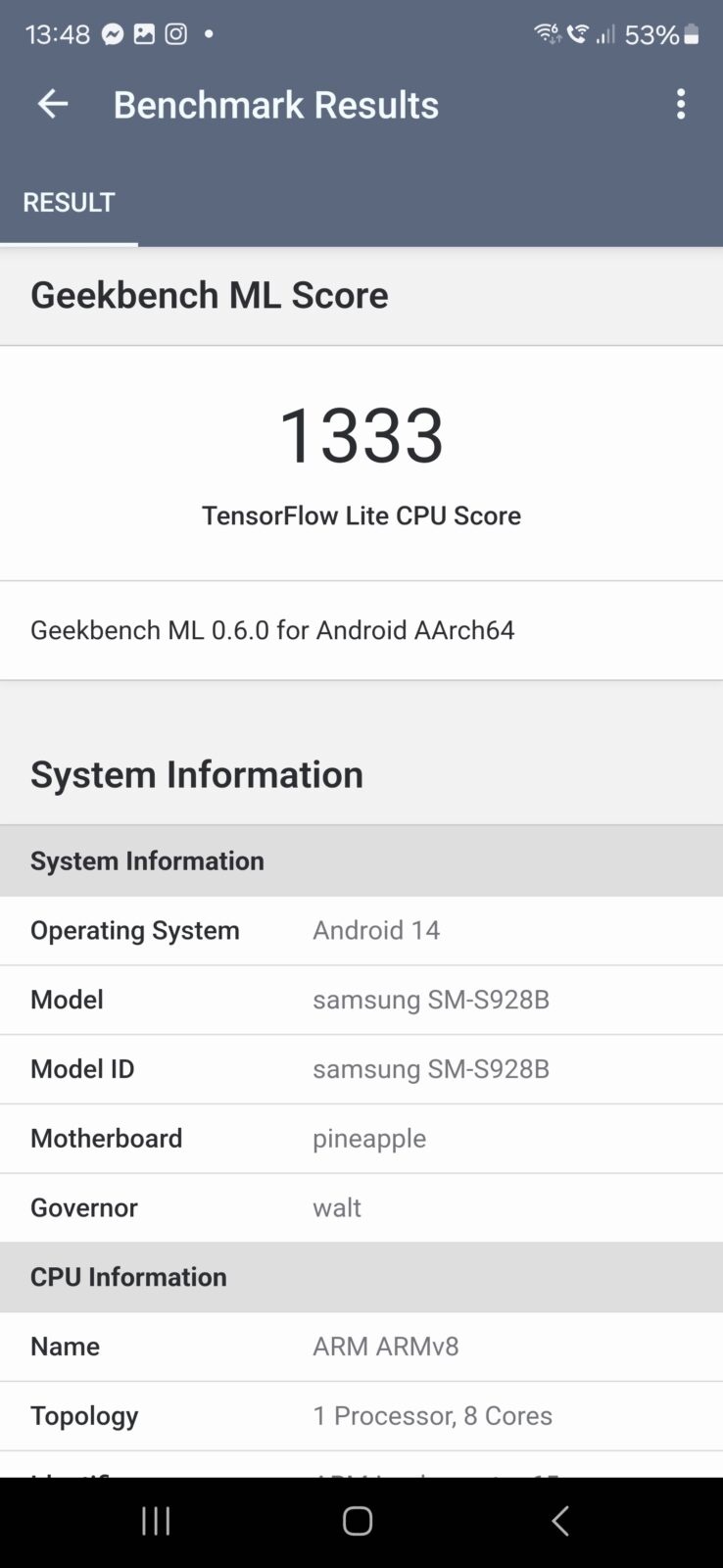 - Geekbench ML CPU: 1333 pkt