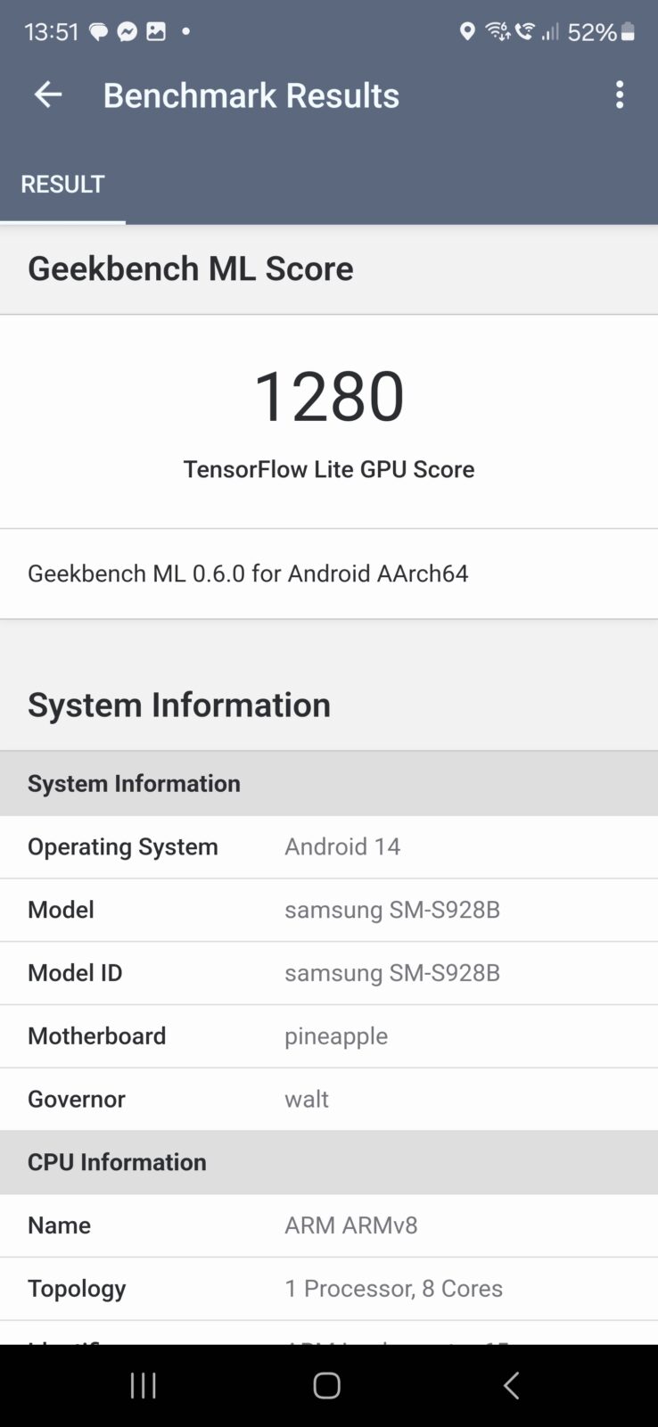 - Geekbench ML GPU: 1280 pkt