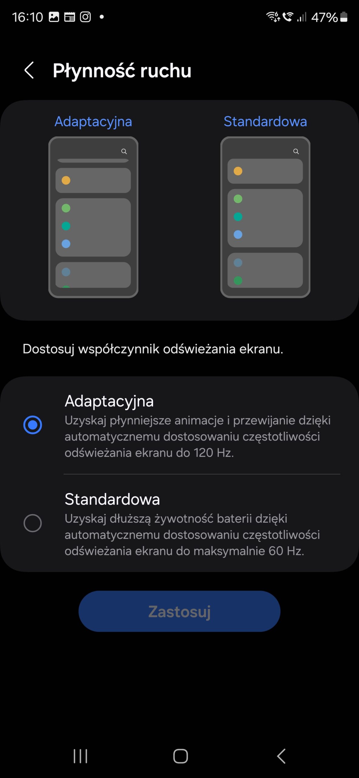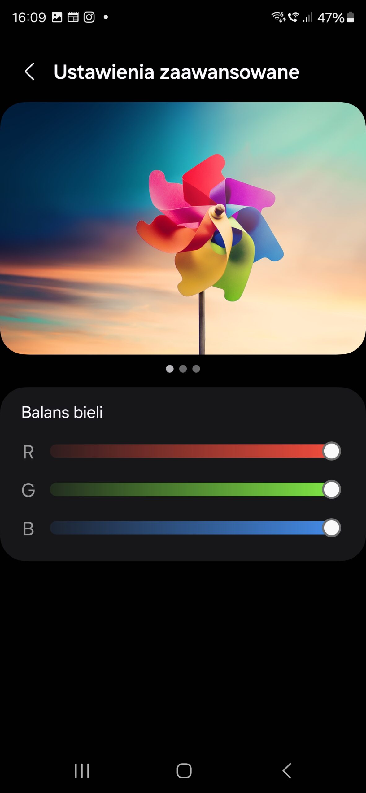 W ustawieniach ekranu nie zabrakło trybu ochrony wzroku, redukującego składową niebieską, który dostępny jest w wariancie adaptacyjnym i ręcznym, oraz adaptacyjnego (Samsung bardzo lubi to słowo) trybu koloru, który dostosowuje temperaturę barwową bieli ekranu do światła otoczenia, podobnie jak Apple TrueTone.