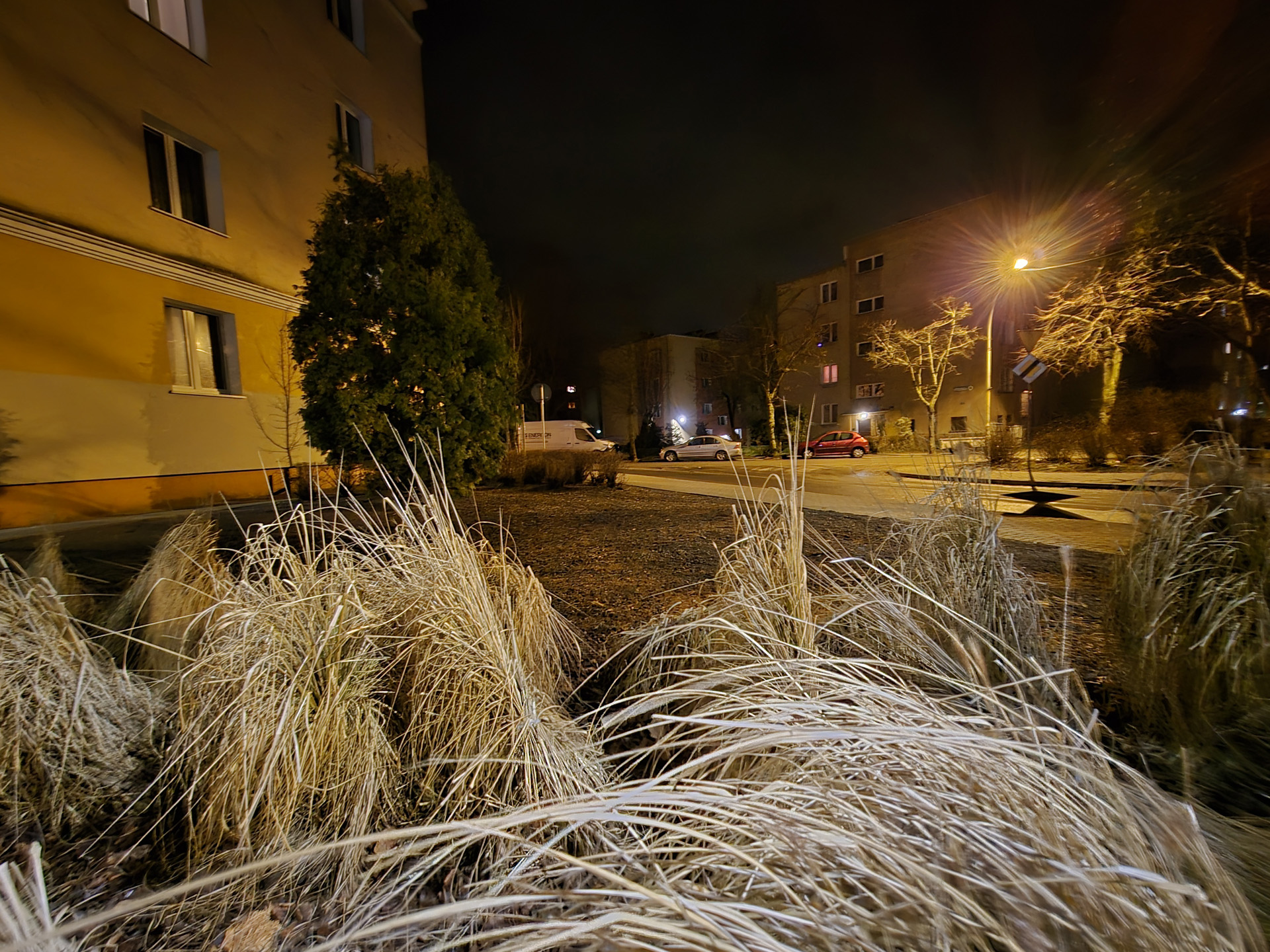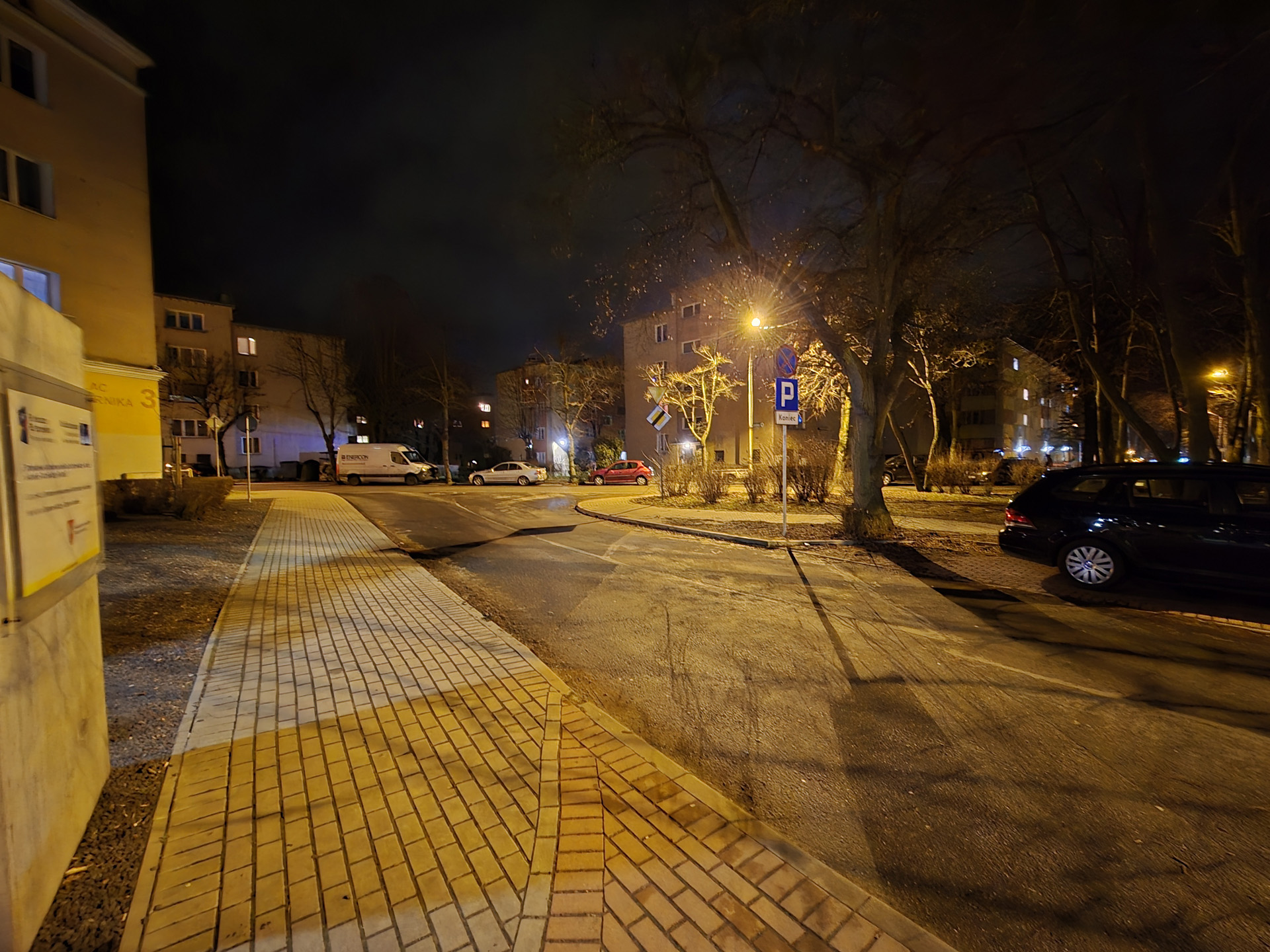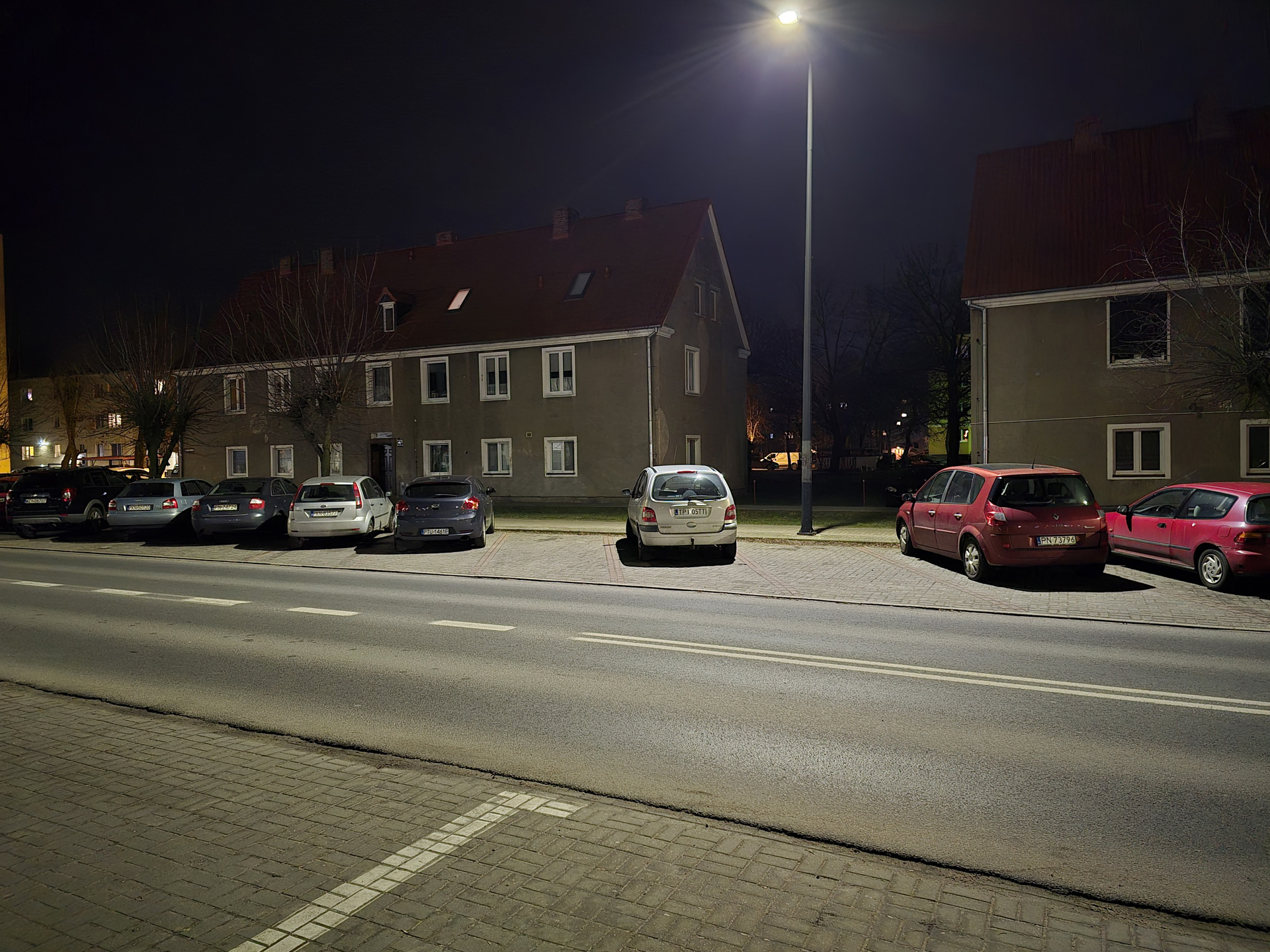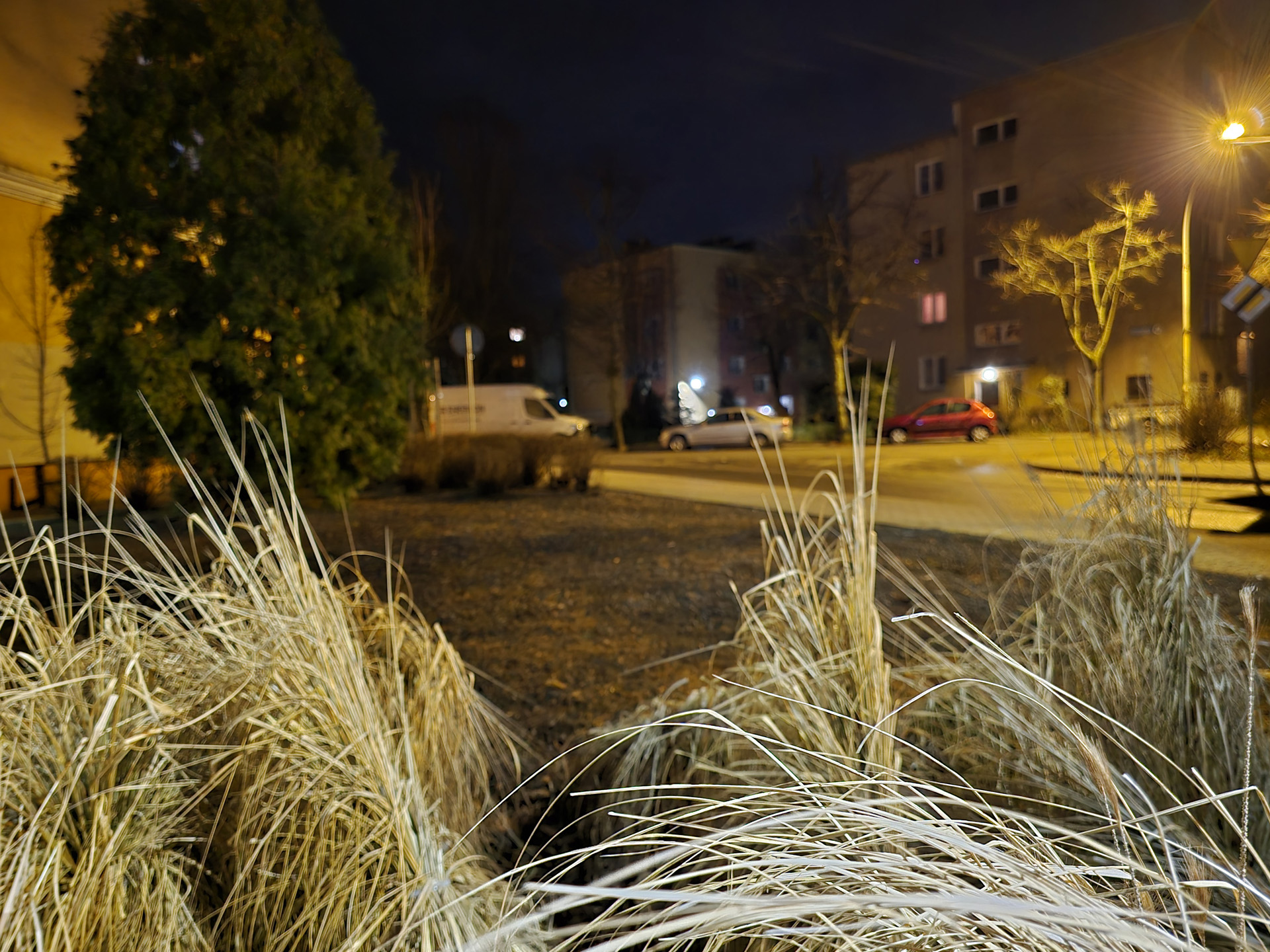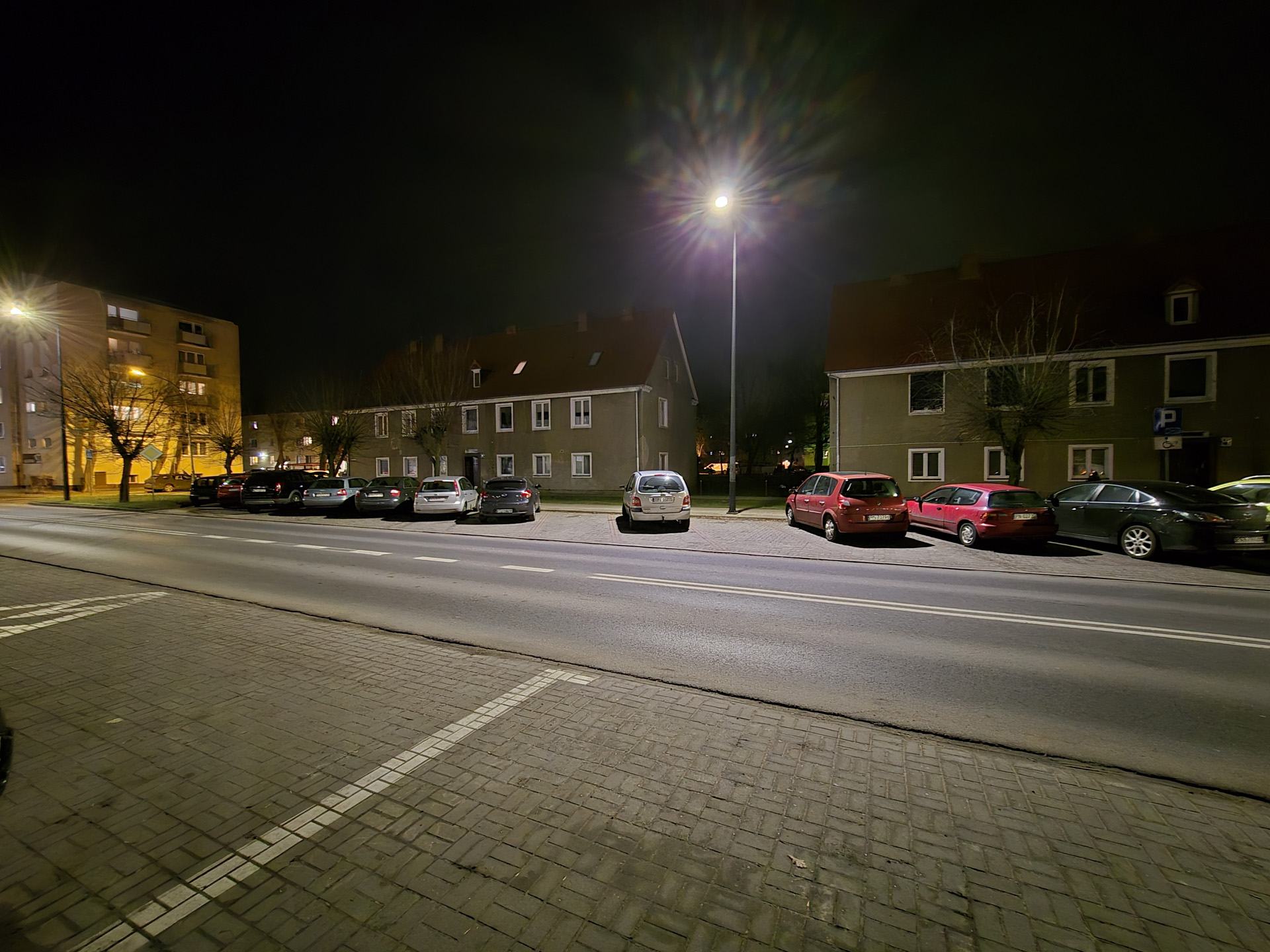 Zdjęcia nocne na pierwszy rzut oka wyglądają naprawdę dobrze. Bliższe i dokładniejsze oględziny jednak wykazują, że do ideału sporo brakuje. Niewątpliwie na plus przemawia poprawna kolorystyka, bardzo dobrze kontrolowane flary i rozsądna ilość szumu widocznego na zdjęciach. Na minus – zdjęcia są mało szczegółowe, a by ten brak nieco przykryć zarazem są zbyt mocne wyostrzone i już w lekkim przybliżeniu wyglądają mało naturalnie. Ogólny efekt jest w miarę dobry, ale znów nie jest taki, by zasłużyć na najwyższe lokaty w segmencie premium