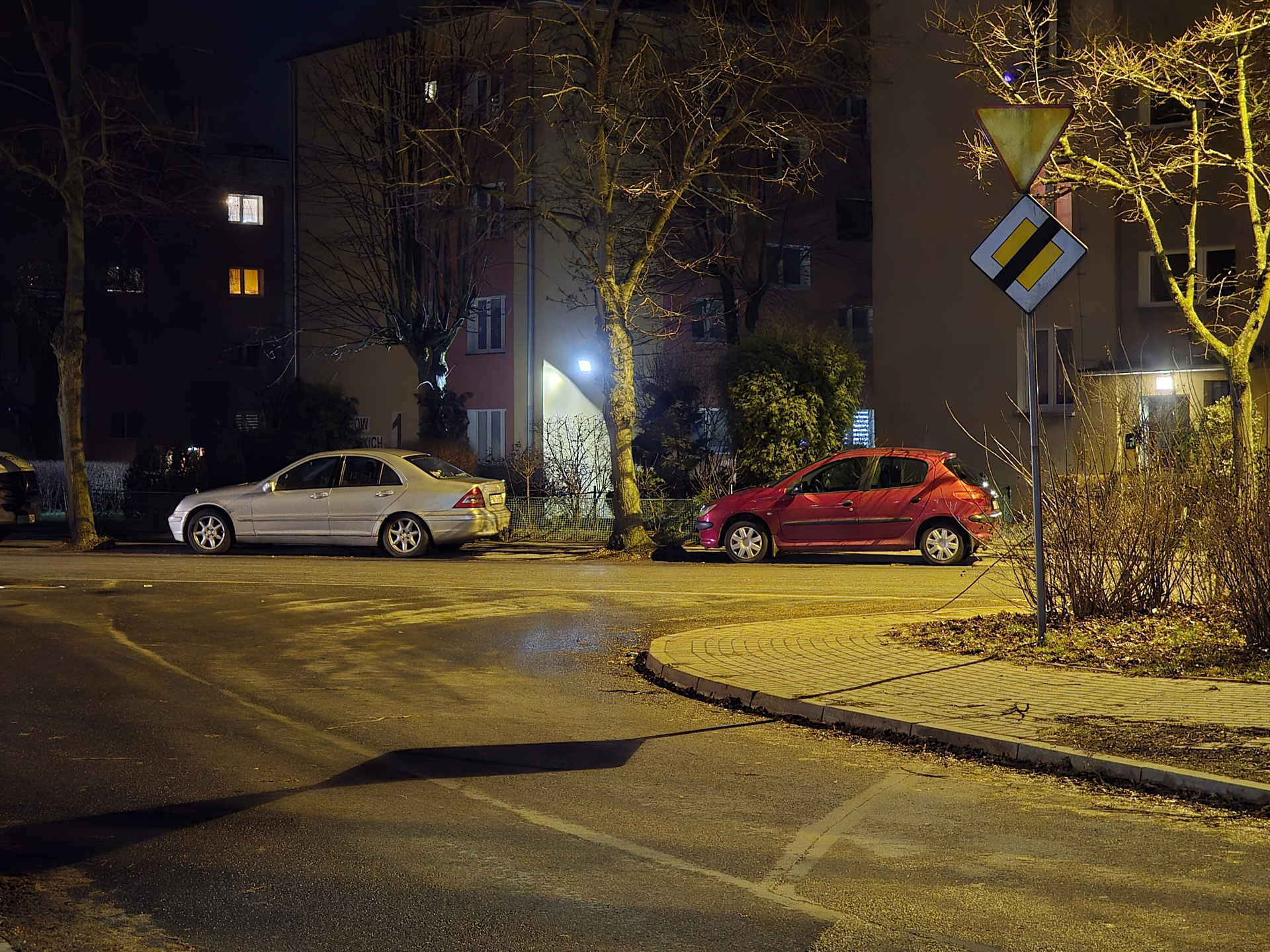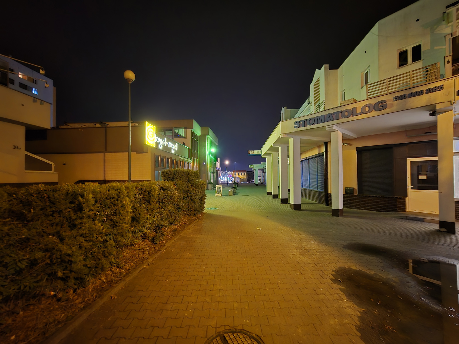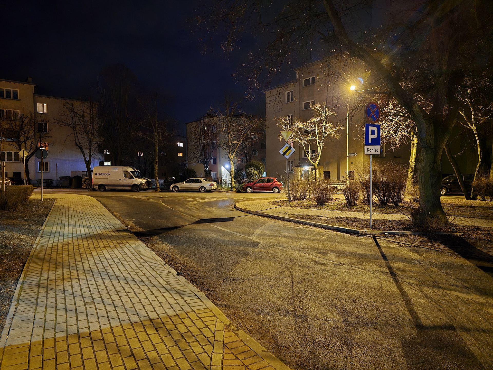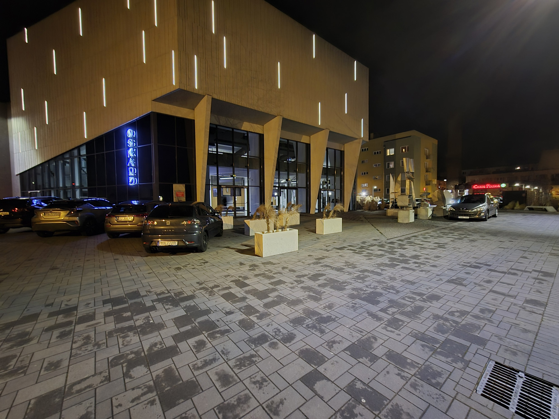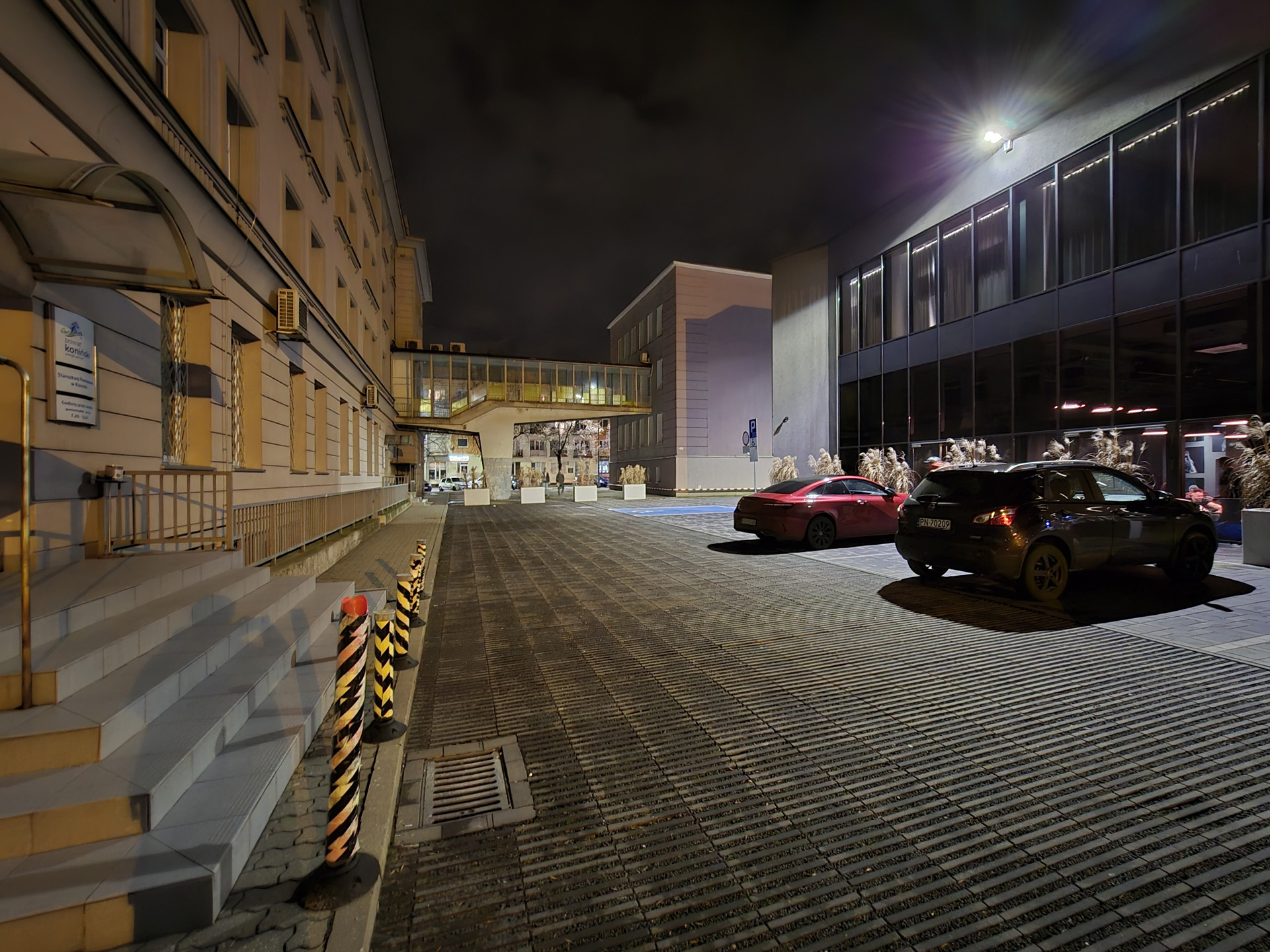 Zdjęcia nocne na pierwszy rzut oka wyglądają naprawdę dobrze. Bliższe i dokładniejsze oględziny jednak wykazują, że do ideału sporo brakuje. Niewątpliwie na plus przemawia poprawna kolorystyka, bardzo dobrze kontrolowane flary i rozsądna ilość szumu widocznego na zdjęciach. Na minus – zdjęcia są mało szczegółowe, a by ten brak nieco przykryć zarazem są zbyt mocne wyostrzone i już w lekkim przybliżeniu wyglądają mało naturalnie. Ogólny efekt jest w miarę dobry, ale znów nie jest taki, by zasłużyć na najwyższe lokaty w segmencie premium