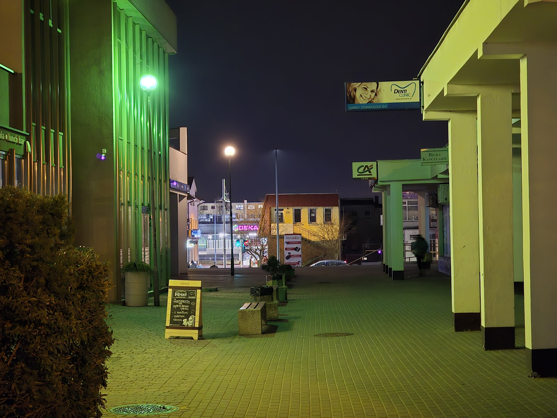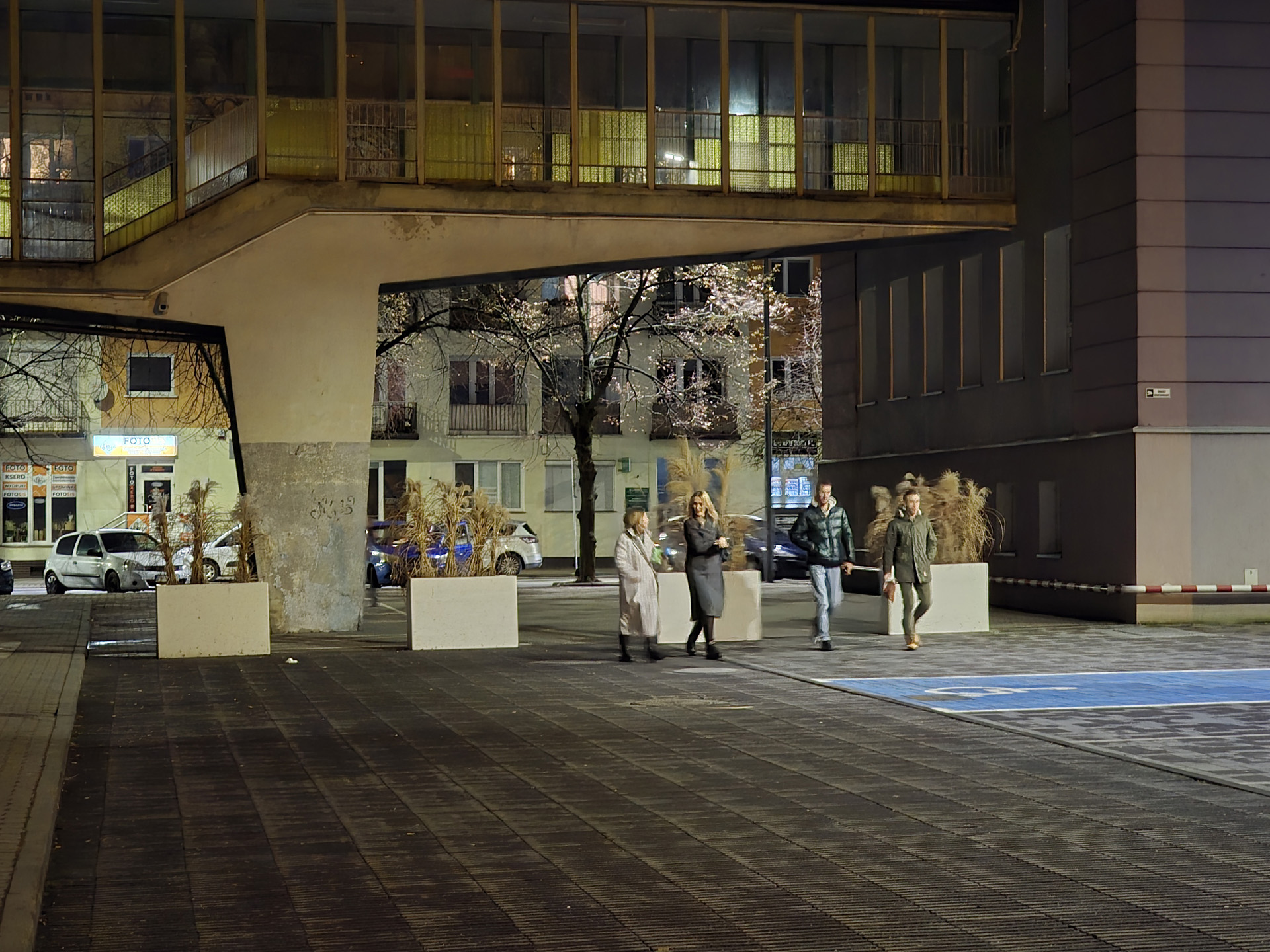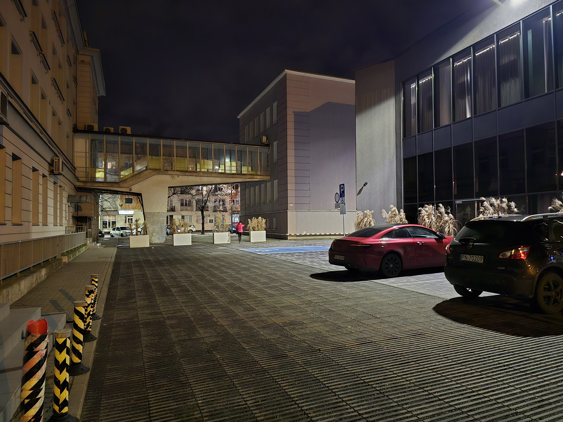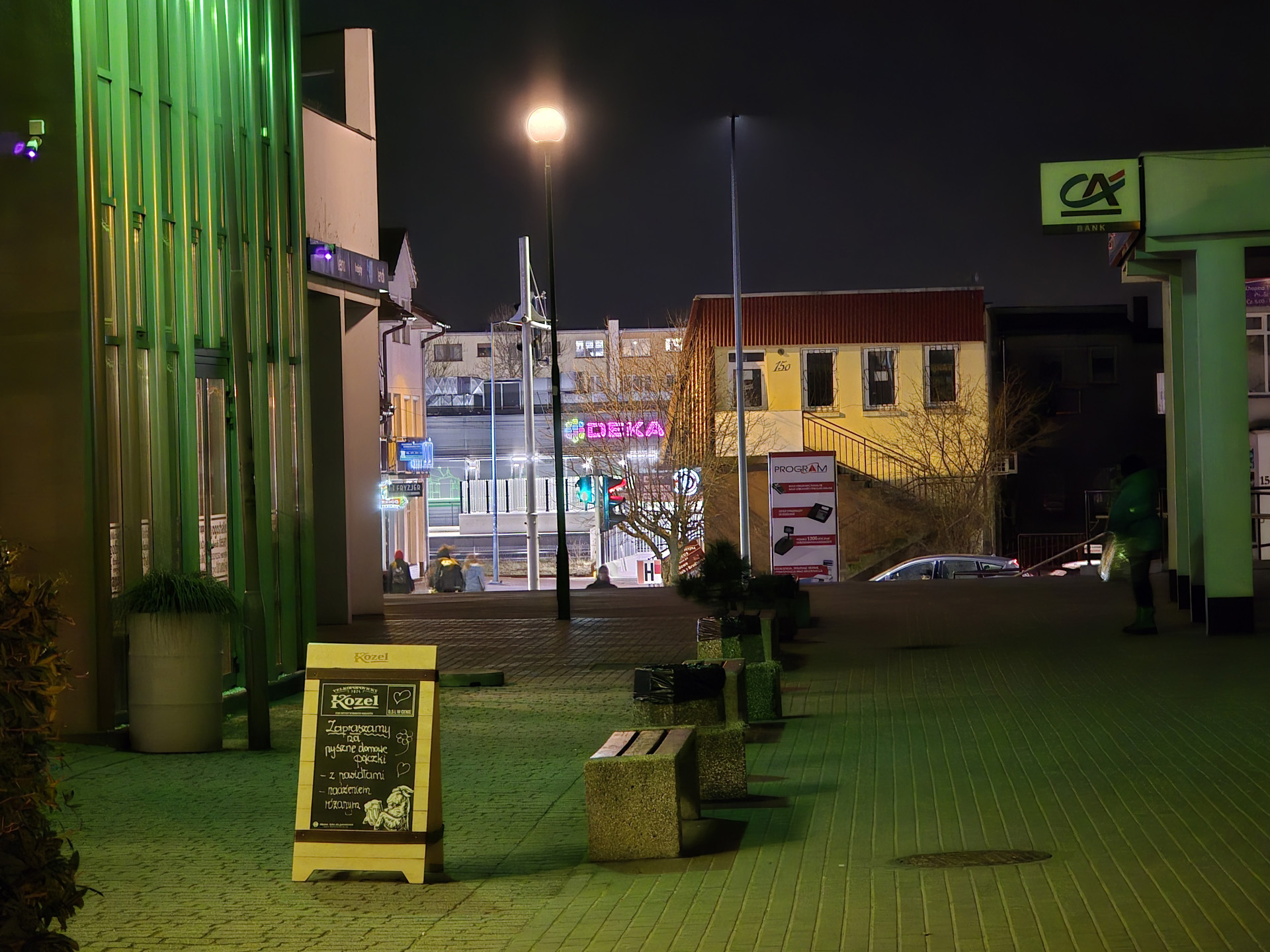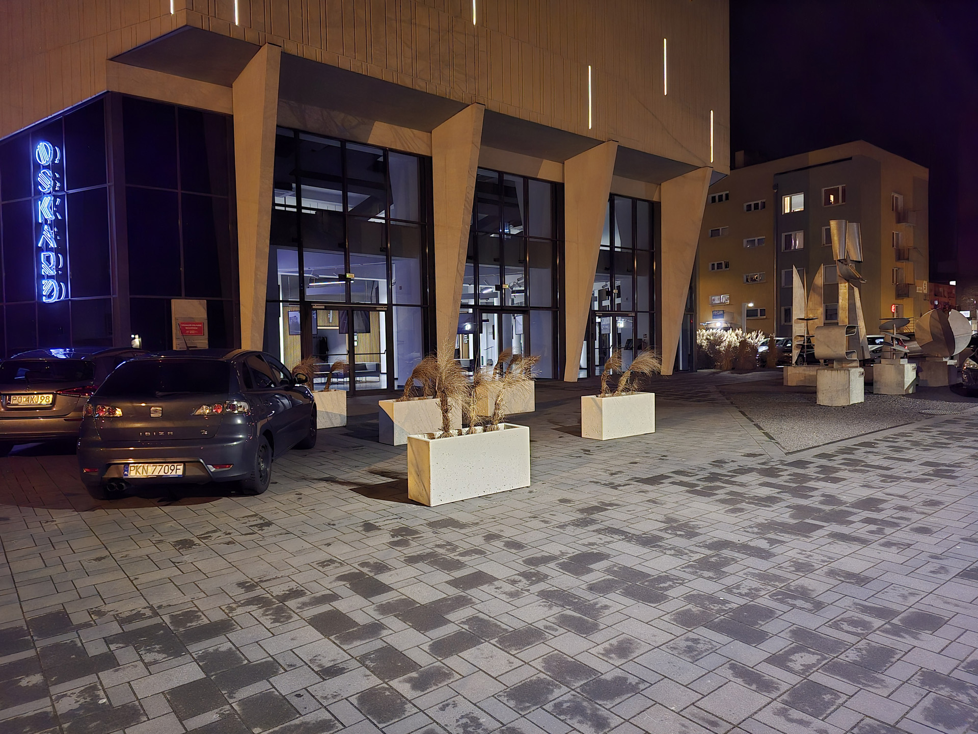 Zdjęcia nocne na pierwszy rzut oka wyglądają naprawdę dobrze. Bliższe i dokładniejsze oględziny jednak wykazują, że do ideału sporo brakuje. Niewątpliwie na plus przemawia poprawna kolorystyka, bardzo dobrze kontrolowane flary i rozsądna ilość szumu widocznego na zdjęciach. Na minus – zdjęcia są mało szczegółowe, a by ten brak nieco przykryć zarazem są zbyt mocne wyostrzone i już w lekkim przybliżeniu wyglądają mało naturalnie. Ogólny efekt jest w miarę dobry, ale znów nie jest taki, by zasłużyć na najwyższe lokaty w segmencie premium