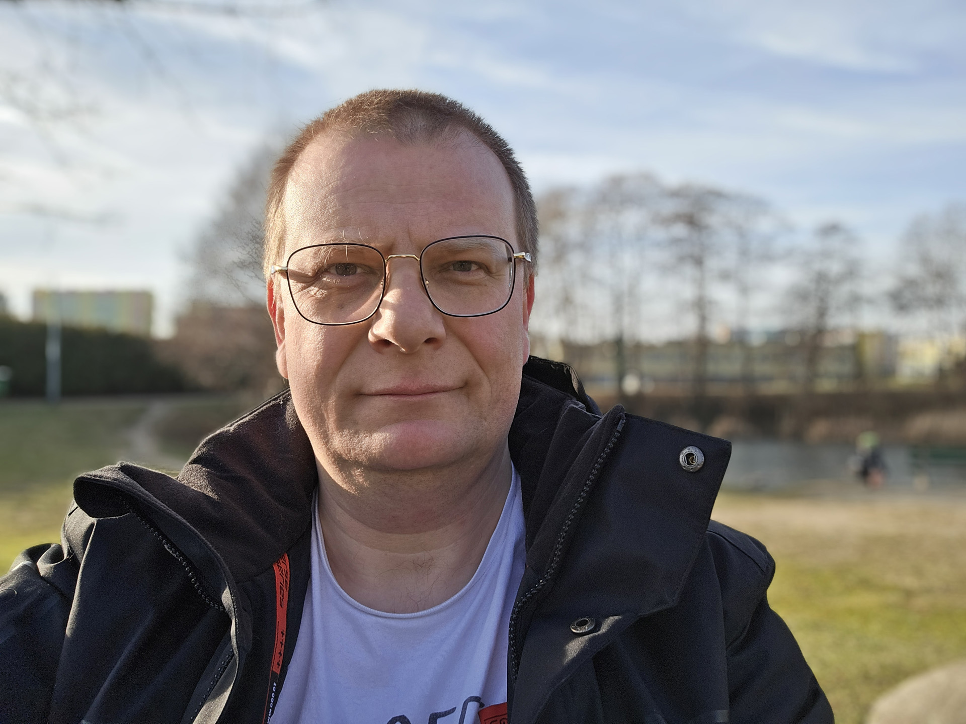Tryb portretowy działa podczas korzystania z aparatu przedniego i tylnego dla przybliżeń x1, x2, x3 i x5 i trzeba przyznać, że jeśli chodzi o ludzi, to robi to naprawdę nieźle – ale nie bezbłędnie. Rozmycie wygląda przekonująco, oprogramowanie radzi sobie dobrze z wykrywaniem włosów – aczkolwiek na drugim zdjęciu wydaje się, że część gałęzi drzewa w tle zostało potraktowane właśnie jako włosy i nie zostało rozmyte.