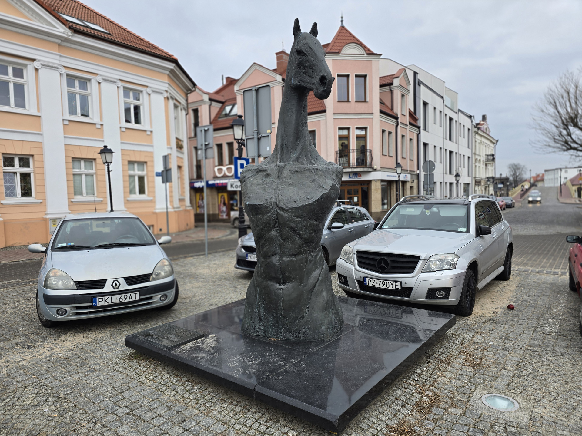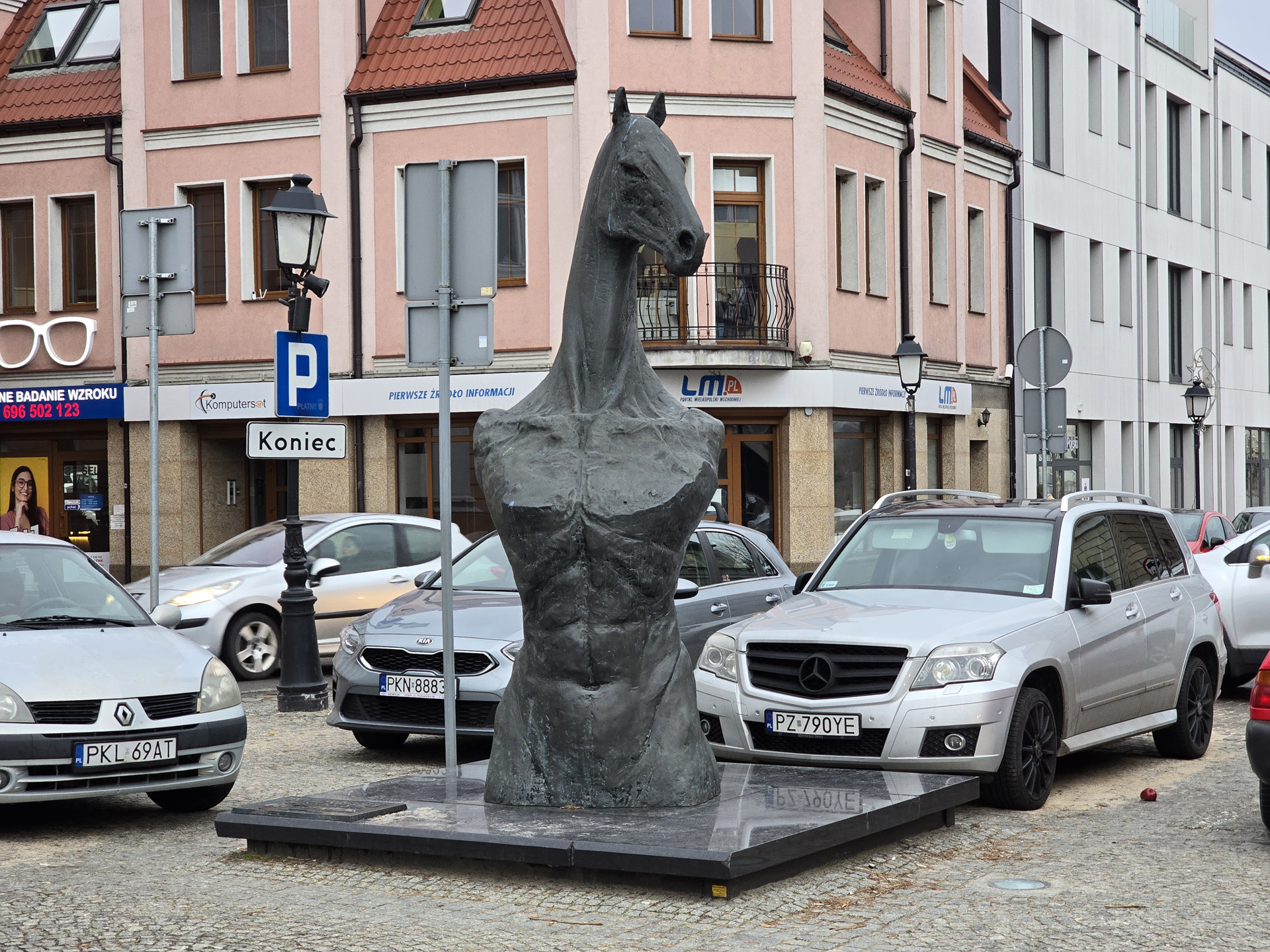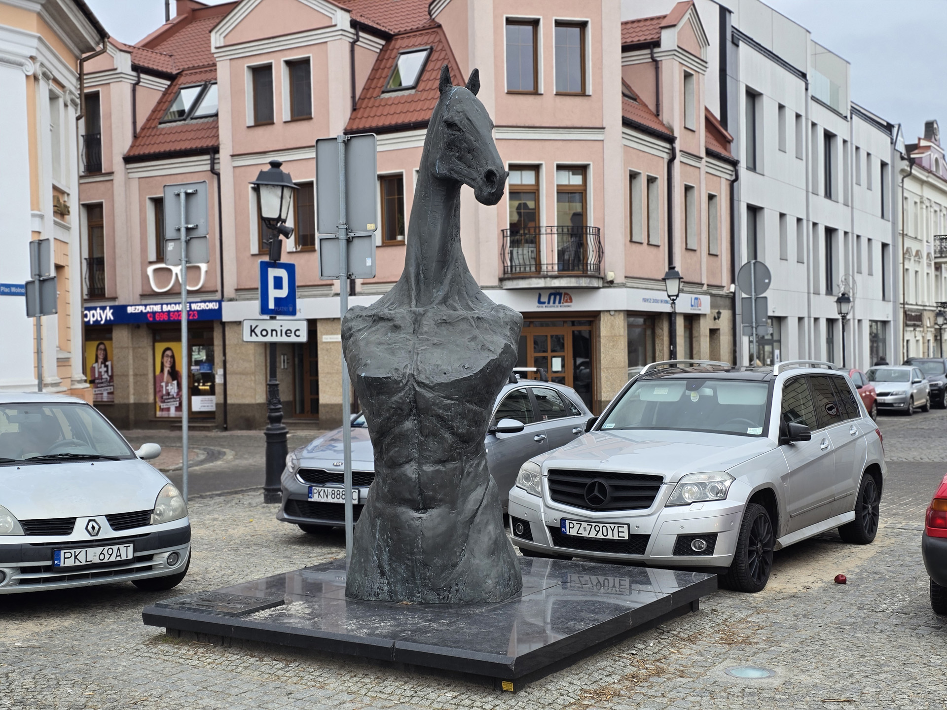 Znacznie gorzej jest, jeśli chcielibyśmy uzyskać rozmycie dla obiektów sztucznych, które człowieka nie przypominają – koniński Człekoń nie został rozpoznany, więc rozmycie jest widoczne wyłącznie na pierwszym zdjęciu, z aparatu szerokokątnego, a tam jest to efekt optyczny, wynikający z małej głębi ostrości jasnego obiektywu. Dla pozostałych ogniskowych, cechujących się skądinąd znacznie przyjemniejszą perspektywą portretową, rozmycia nie ma w ogóle.