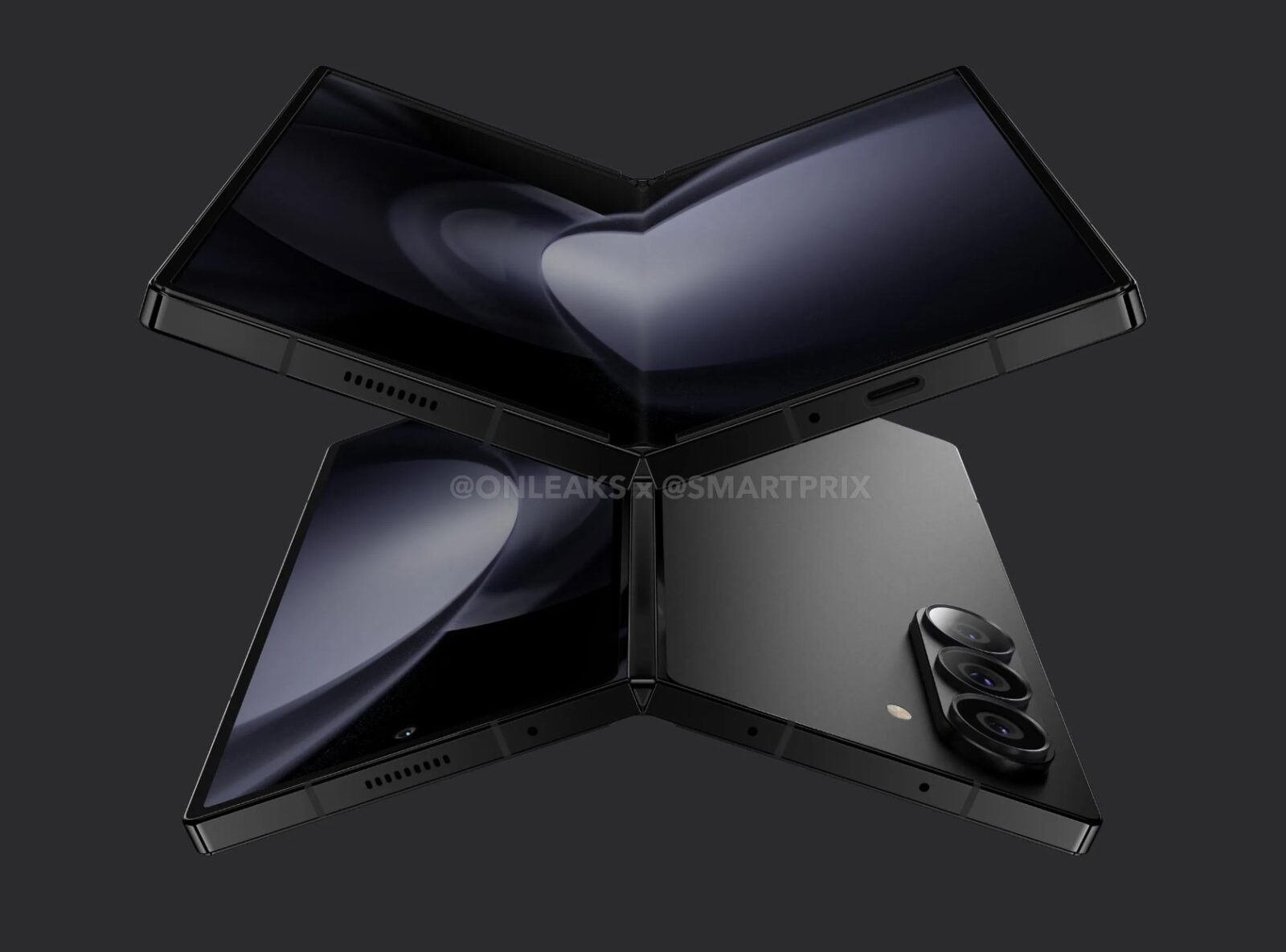 Nie jest to złudzenie, bo potwierdzają to również wymiary. Tegoroczny Fold będzie miał wymiary 153,5 x 132,5 x 6,1 mm po rozłożeniu. Porównując go z Galaxy Z Fold 5 (154,94 x 129,8 x 6 mm) widzimy, że będzie on nieco krótszy, ale za to zauważalnie szerszy. Dzięki temu uda się zmienić proporcje zewnętrznego panelu, który do tej pory był dla wielu zbyt długi i wąski. Kolejnym, co rzuca się w oczy, jest brak otworu na aparat do selfie w składanym panelu, co sugeruje jego ponowne umieszczenie pod wyświetlaczem. Panel zewnętrzny otwór ma.
