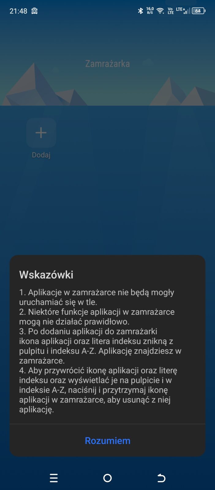 - Zamrażarka – obszar systemu, gdzie umieszczamy aplikacje, aby nie mogły działać w tle;
