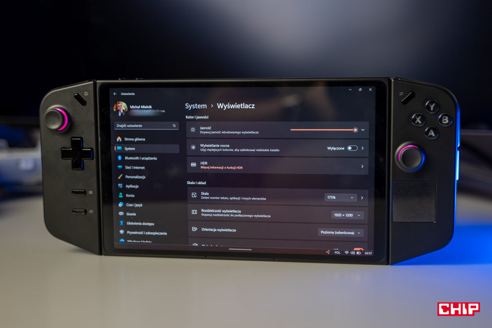 Kolory są żywe i całkiem adekwatne względem rzeczywistości, choć osobiście życzyłbym sobie, by biele stały się mniej żółtawe. Nie trzeba za to poprawiać bardzo dobrych kątów widzenia. Brakuje mi więcej opcji zmiany obrazu, czy to w Windowsie, czy w oprogramowaniu Lenovo, ale nie tak, jak innych funkcji rozwiązań poprawiających jakość. Niestety, Lenovo Legion Go nie obsłuży HDR-u oraz VRR, co mogłoby być pożądane przez bardziej zaangażowanych graczy. Trochę dziwny ruch, biorąc pod uwagę inne ruchy adresujące potrzeby graczy (jak mnóstwo dodatkowych przycisków).