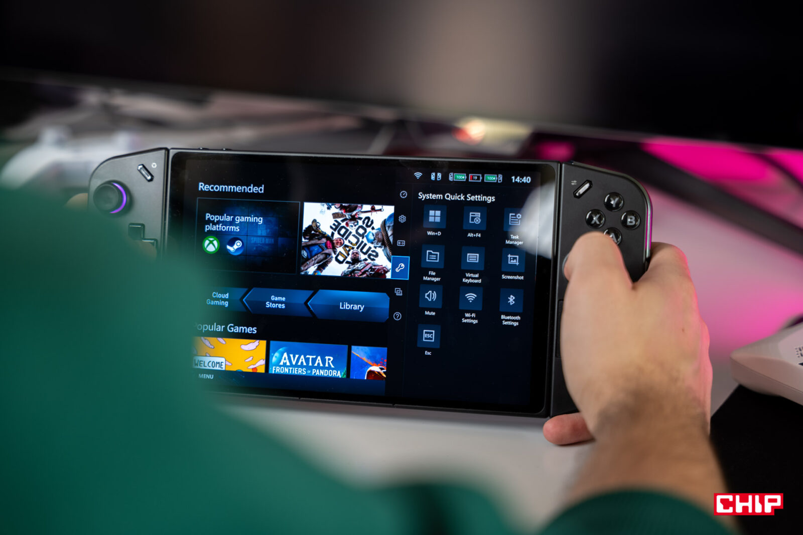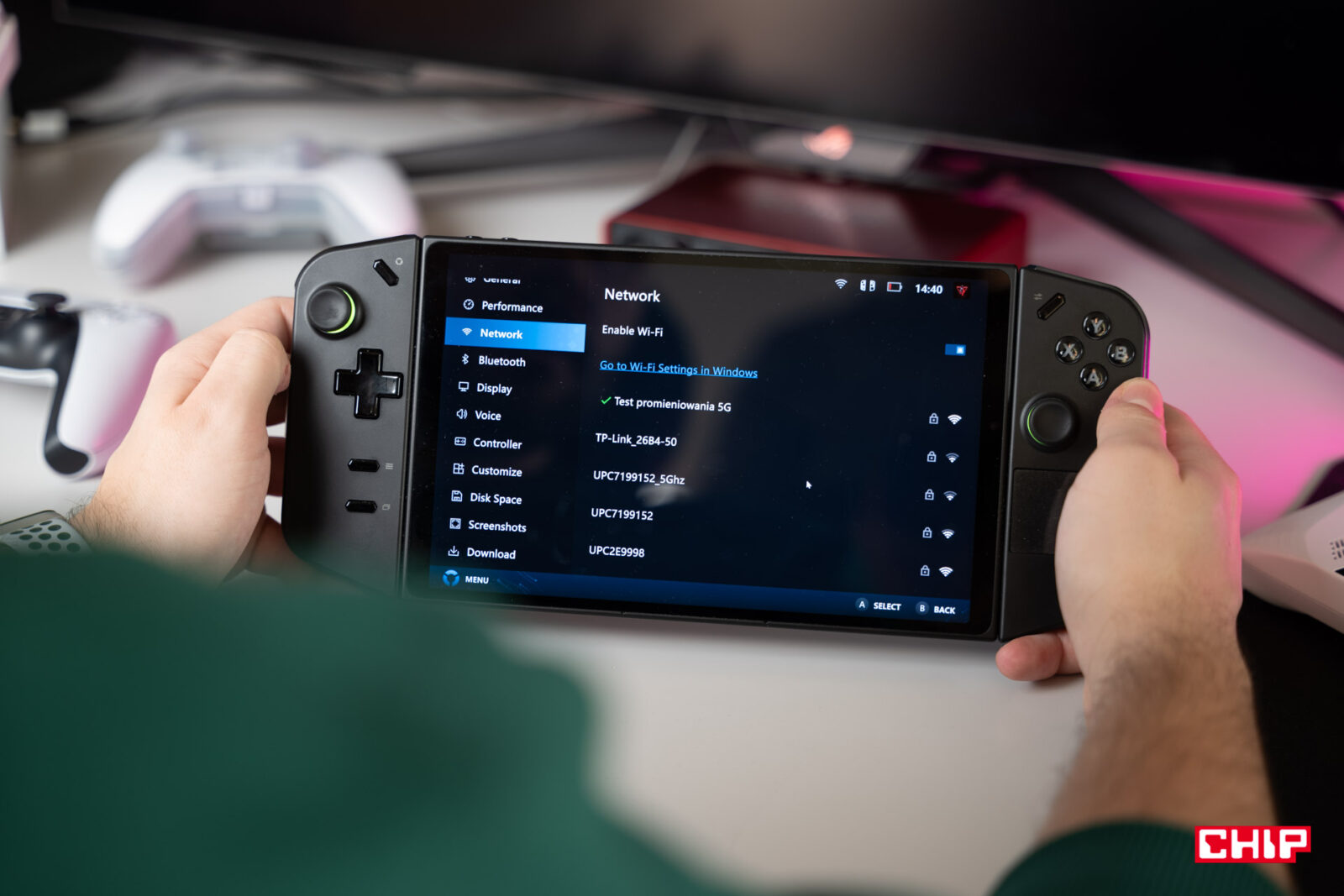 Jedynie sekcja biblioteki faktycznie spełnia swoje zadanie. Z jednego miejsca uruchomimy gry i aplikacje je obsługujące. Wyłapywanie ich z bibliotek działa całkiem dobrze, w dodatku sami dodamy niezbędne aplikacje. Z kolei w ustawieniach jest co zmieniać, ale nie jest też idealnie. Zamiast menu obsługującego wybór sieci Wi-Fi czy połączenia Bluetooth – przekierowanie skrótem w osobnym menu do ekranu z ustawieniami, gdzie obsługa za pomocą ekranu dotykowego jest sporo trudniejsza. Do tego sekcja szybkich ustawień także jedynie skraca drogę do trudnego w obsłudze, dotykowego doświadczenia z Windowsem.