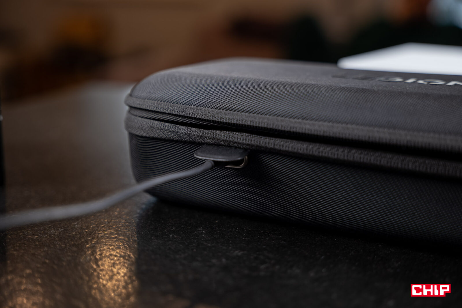 Po zapięciu całości zamkiem powstaje spory pakunek, do którego jednak nie mieści się dołączona do zestawu 65-watowa ładowarka. Na stałe przytwierdzony do niej przewód ma długość 1,8 metra i kończy się złączem USB-C. W pudełku sklepowym znajdziecie także zdrapkę na 3-miesięczny dostęp do usługi Game Pass Ultimate.
