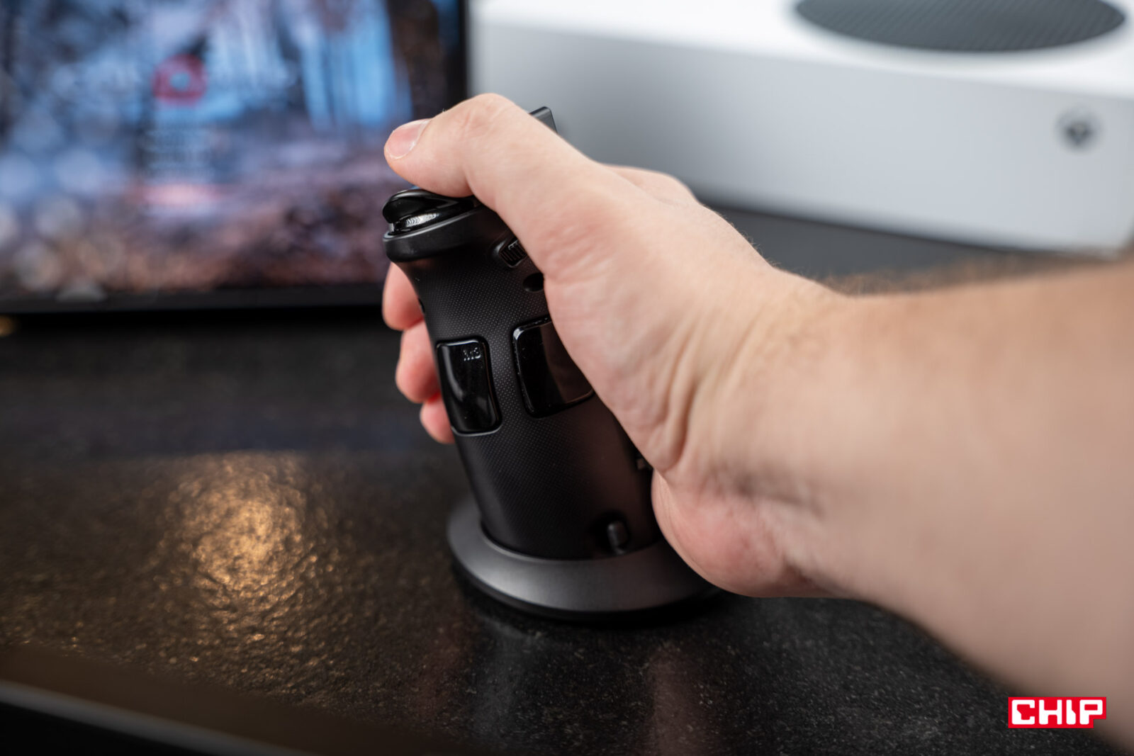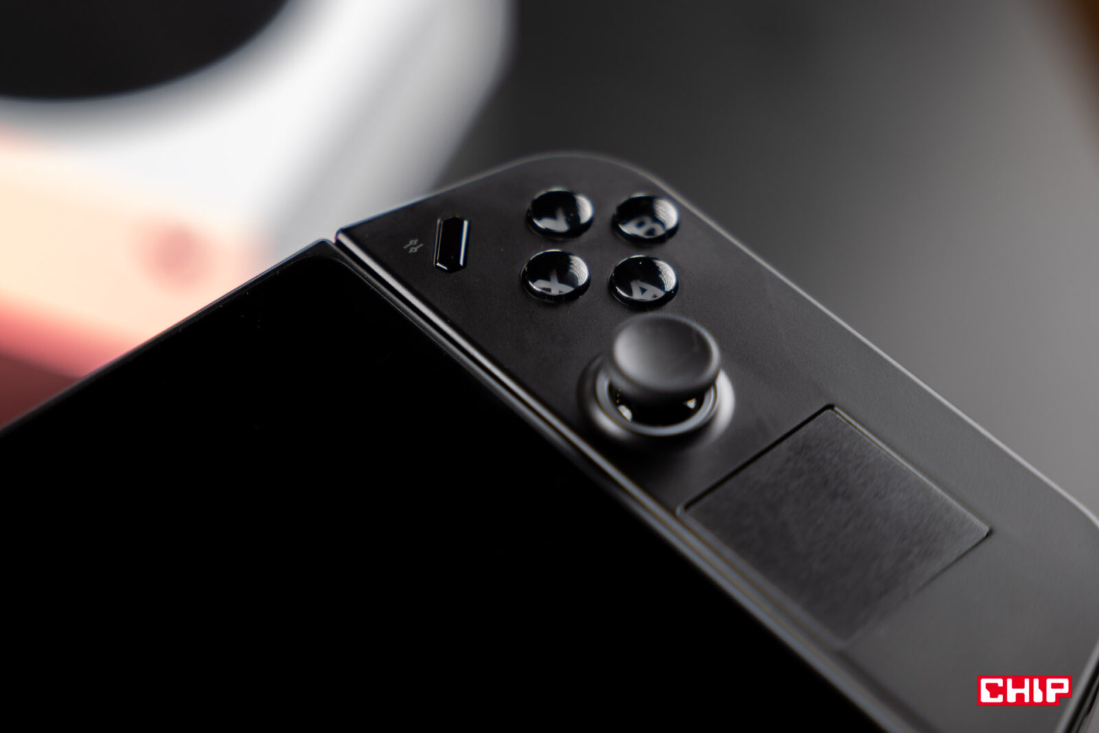 To, co dzieje się z dodatkowymi przyciskami, jest dla mnie mocno zastanawiające. Ze względu na próbę stworzenia z jednego kontrolera myszki/arcade-sticka dodatkowe przyciski nie są symetryczne. Na lewym kontrolerze znajdziemy dwa, całkiem spore i klikające dość odpustowo przyciski Y1 i Y2. Prawy kontroler ma dwa dodatkowe przyciski M1 i M2 na bocznej ściance, które omyłkowo klikałem podczas gry w niektóre tytuły (bez konsekwencji w grach), ale to nie wszystko. Na tylnym uchwycie znajdziemy przyciski M3 oraz Y3, ustawione nie pod sobą, jak na lewym kontrolerze, a obok siebie. Do tego zmieszczono tam kółko do przewijania stron internetowych, a na froncie dodano płytkę dotykową. Bardzo dużo do przetworzenia.