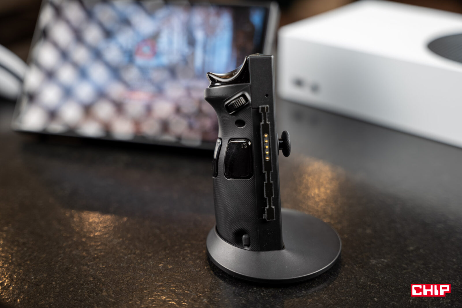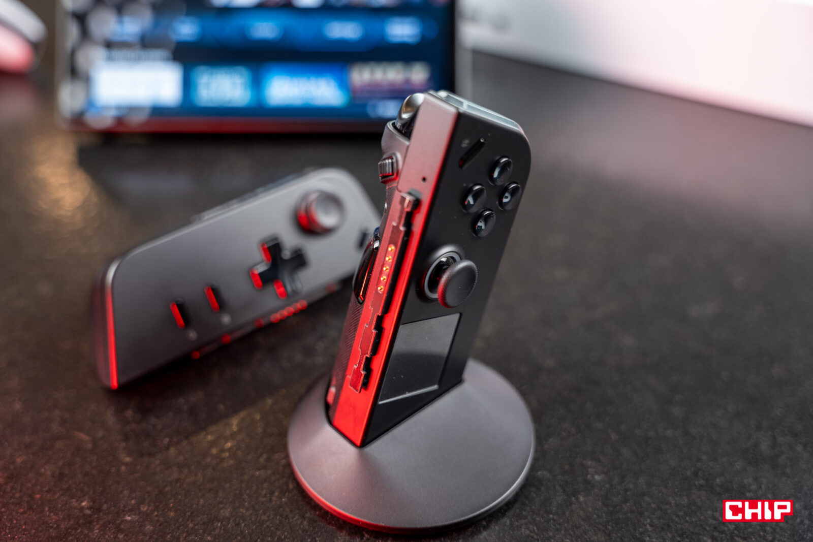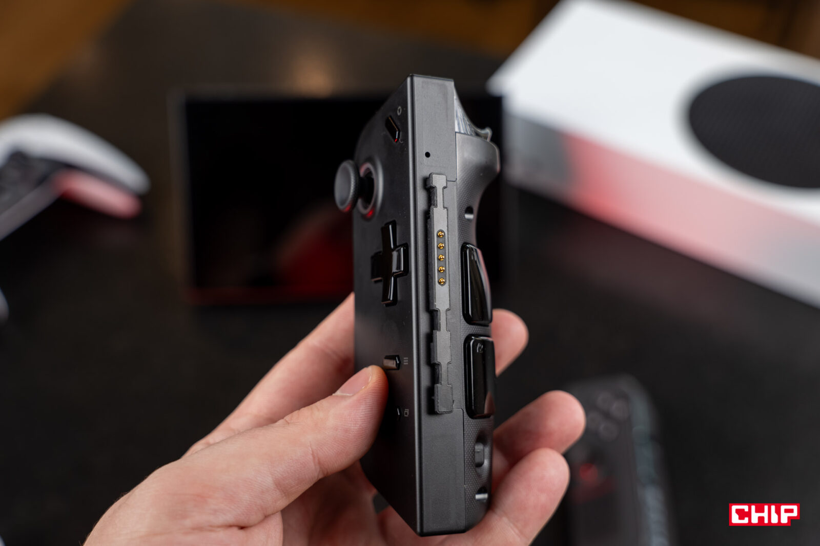 Kilka decyzji projektowych do mnie nie przemawia. Jak dla mnie granie z wyjętymi kontrolerami to rozwiązanie niezbyt wygodne. Jasne, dzięki temu nie trzymamy najcięższej części konsoli, a do tego otrzymujemy funkcjonalność myszki. Z drugiej strony podczas rozgrywki wymagającej precyzji rezygnujemy z punktu docisku, który poprawia chwyt, a przez to precyzję. Przydałoby się akcesorium łączące dwie połówki jak dodatek dla Nintendo Switcha. Nie rozumiem też, dlaczego przyciski menu kontekstowego i pauzy (rodem z kontrolera Microsoftu) umieszczono tak nisko. Zanim dotrzemy kciukiem z gałki analogowej do przycisku pauzy, stracimy nieco czasu i nie da się go tak po prostu nadrobić. Moim zdaniem powinny one być w górnej części, tam gdzie znajduje się przycisk przekierowujący do aplikacji Legion Space, a po drugiej stronie włączający szybkie ustawienia.