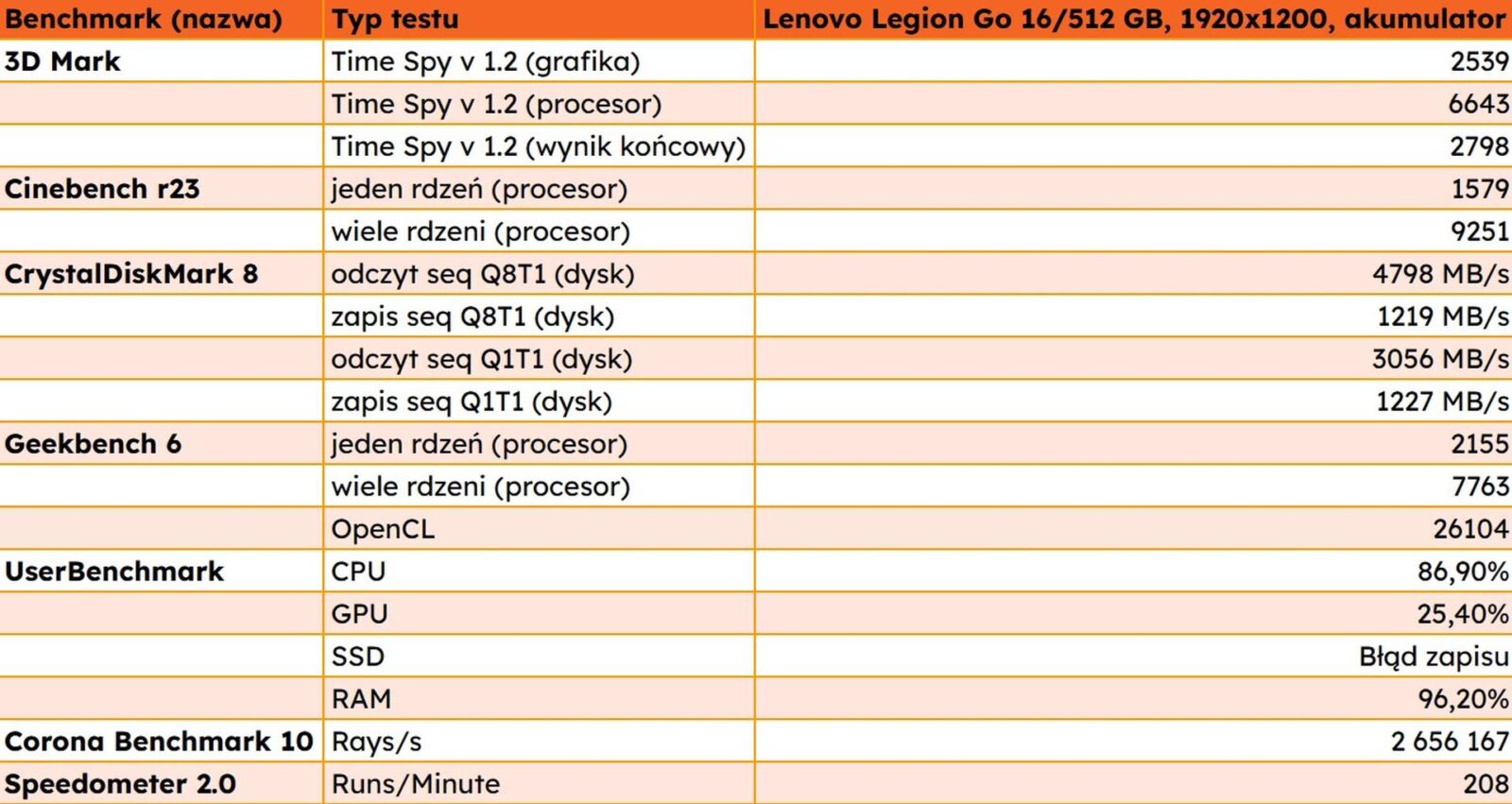 Wydajność Lenovo Legion Go w grach i benchmarkach