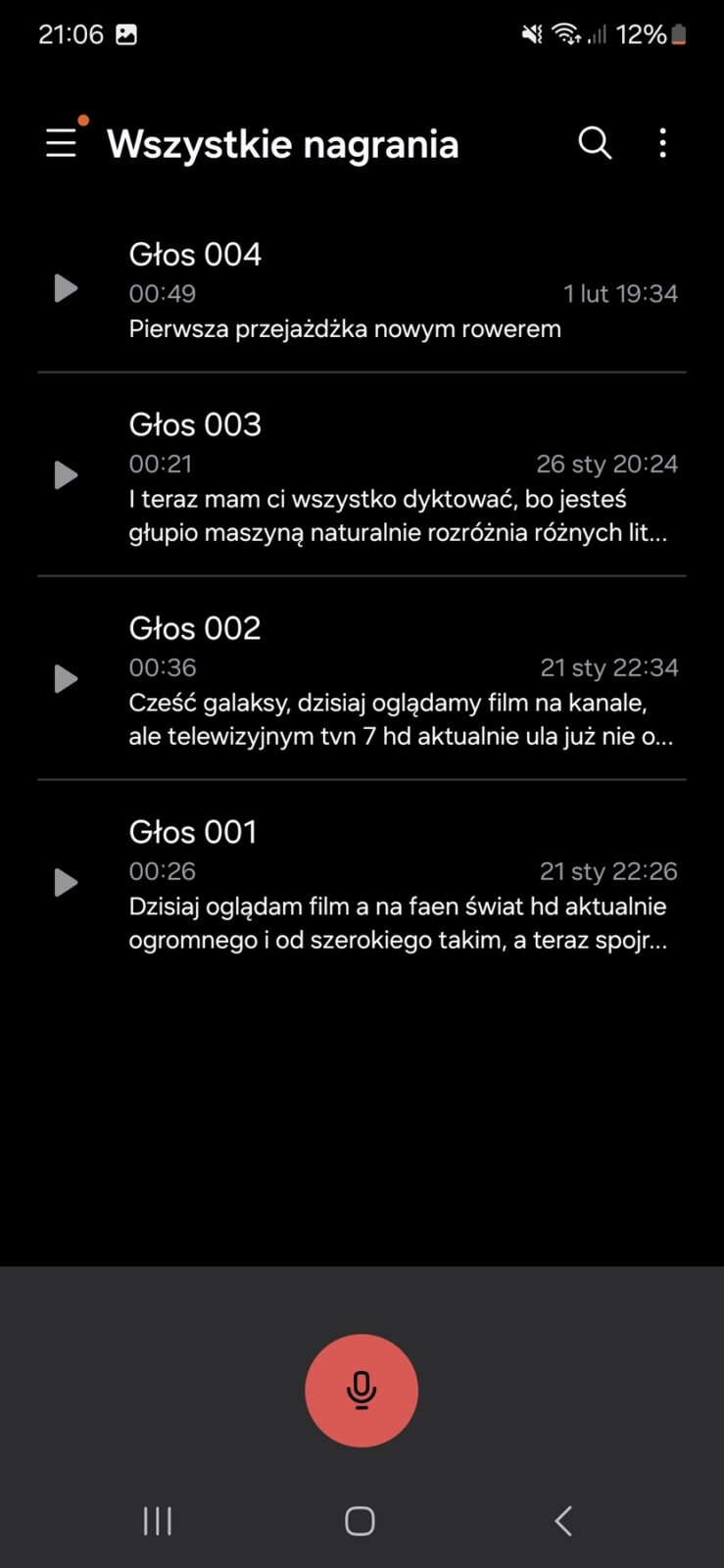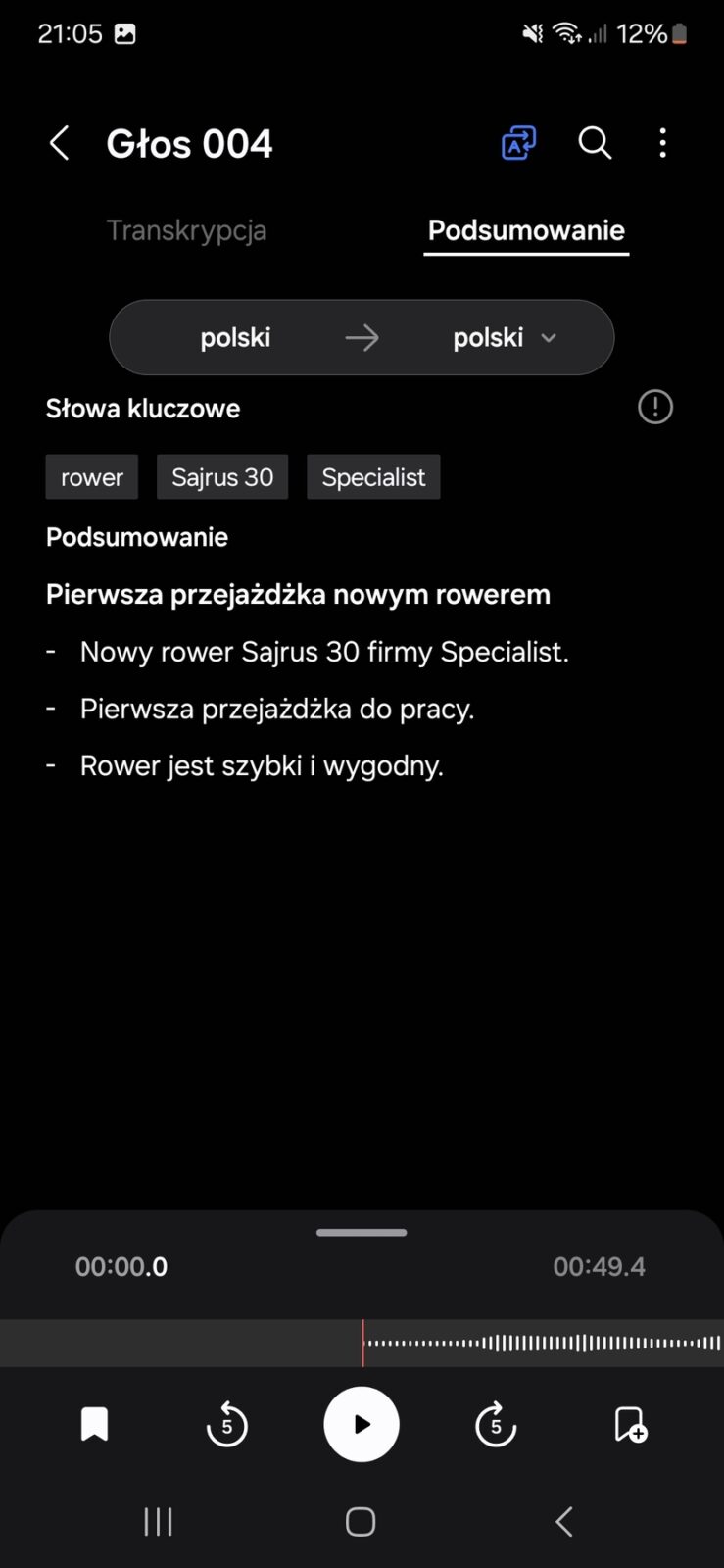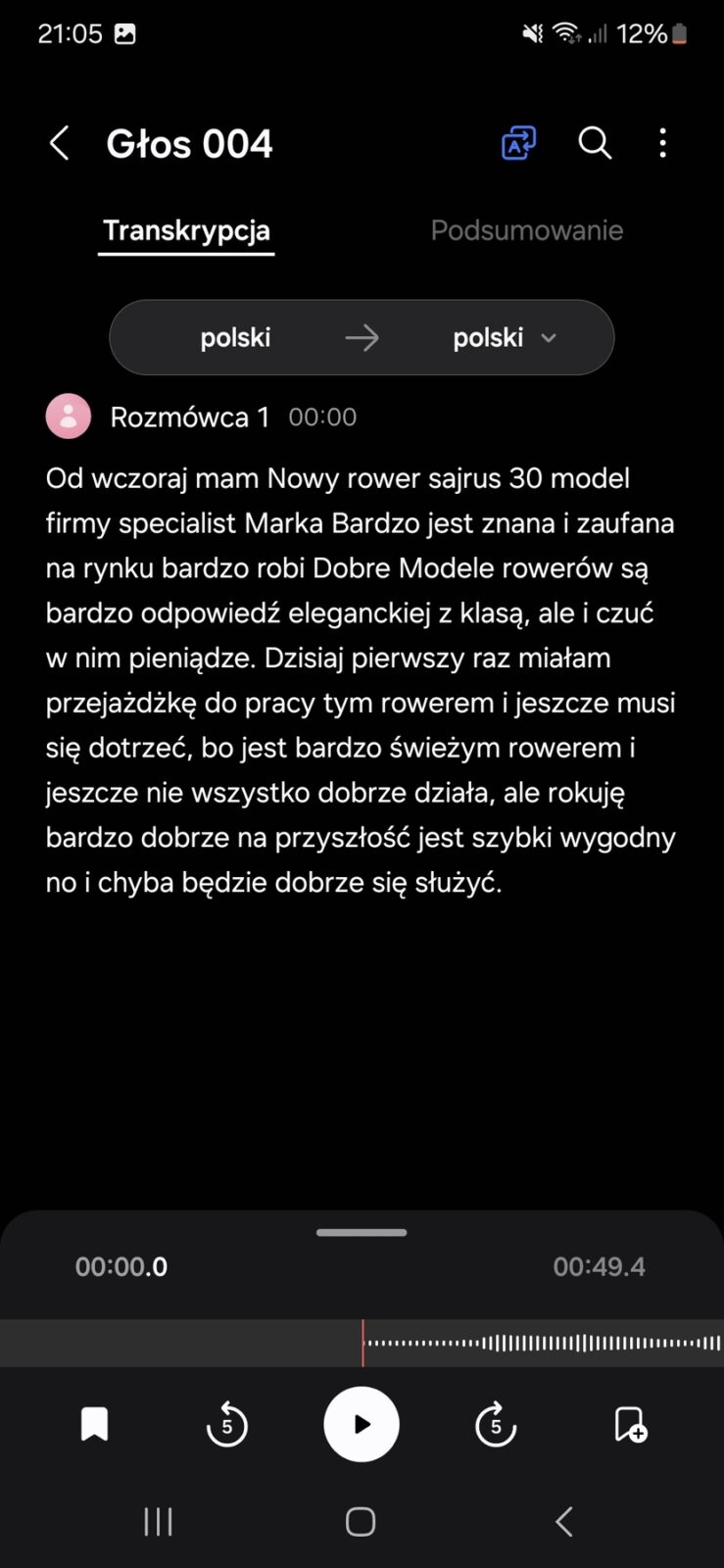 - Dyktafon (przekształcanie nagrań na tekst i tworzenie podsumowań). Po nagraniu dźwięku, możemy przekształcić go na tekst i stworzyć do niego podsumowanie. O ile podsumowania są tworzone dobrze, o tyle w transkrypcji mowy na tekst dość często pojawiają się błędy. Najlepiej starać się mówić głośno i wyraźnie. Gdy w tle pojawiają się głosy i szepty innych osób, funkcja staje się praktycznie bezużyteczna (za dużo błędów).