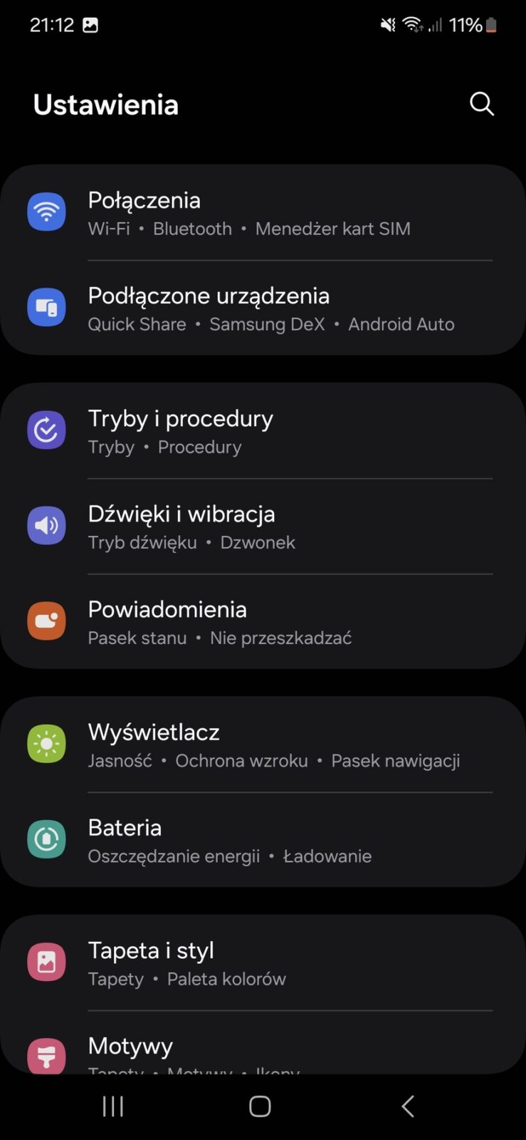 Tu wspomnę jeszcze, że system działała bardzo płynnie i stabilnie, a wizualnie nie zmieniło się wiele. Styl nakładki jest taki sam. Jest bardzo dużo ustawień, także bez problemu dopasujemy wygląd i funkcjonalność do naszych potrzeb. Na plus należy zaliczyć brak preinstalowanych aplikacji firm zewnętrznych innych niż Google (+ apka Facebooka). Dzięki temu panuje porządek, a potrzebne nam dodatkowe aplikacje szybko zainstalujemy ze sklepu Google Play lub Galaxy Store. Zdziwiło mnie za to, że po pierwszym uruchomieniu sporo aplikacji systemowych, takich jak np. galeria, mają „wyszarzone” ikonki i ich pobranie inicjuje się dopiero po podpięciu smartfona pod Wi-Fi.
