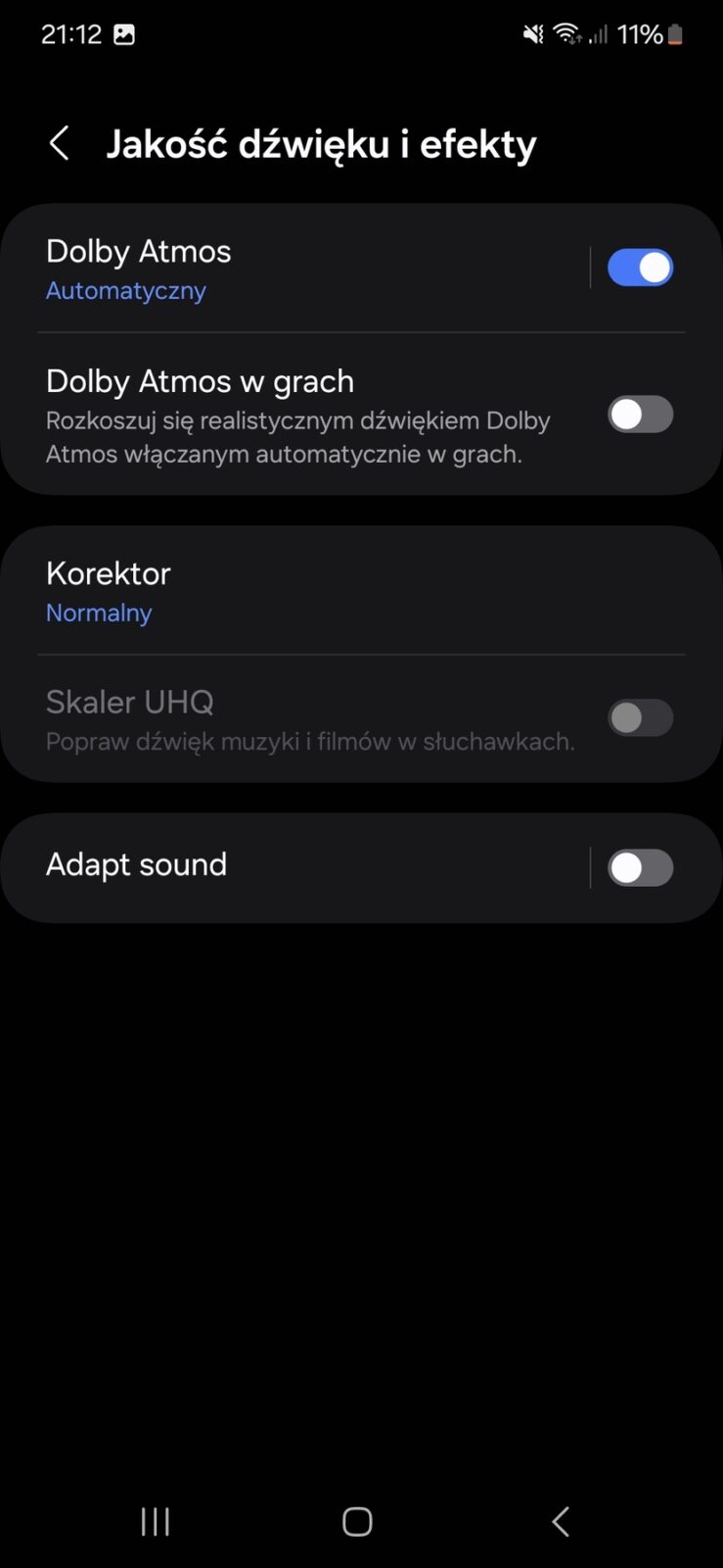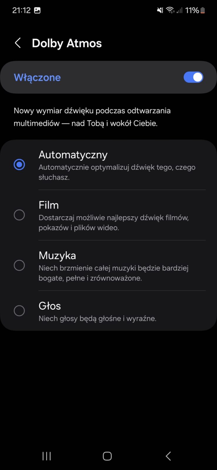 Samsung Galaxy S24+ posiada oczywiście głośniki stereo, które grają całkiem donośnie, ale niestety brakuje im niskich tonów. Na najwyższych poziomach głośności jest już całkiem „płasko”, a w dodatku pojawiają się słyszalne zniekształcenia. Sytuacji nie poprawia tu zbytnio nawet system Dolby Atmos, który domyślnie jest tu wyłączony. Po jego włączeniu sytuacja ulega tylko nieznacznej poprawie, także Samsung Galaxy S24+ raczej nie rozkręci nam muzycznej imprezy. W ustawieniach poza opcjami Dolby Atmos, znajdziemy również m.in. manualny equalizer.