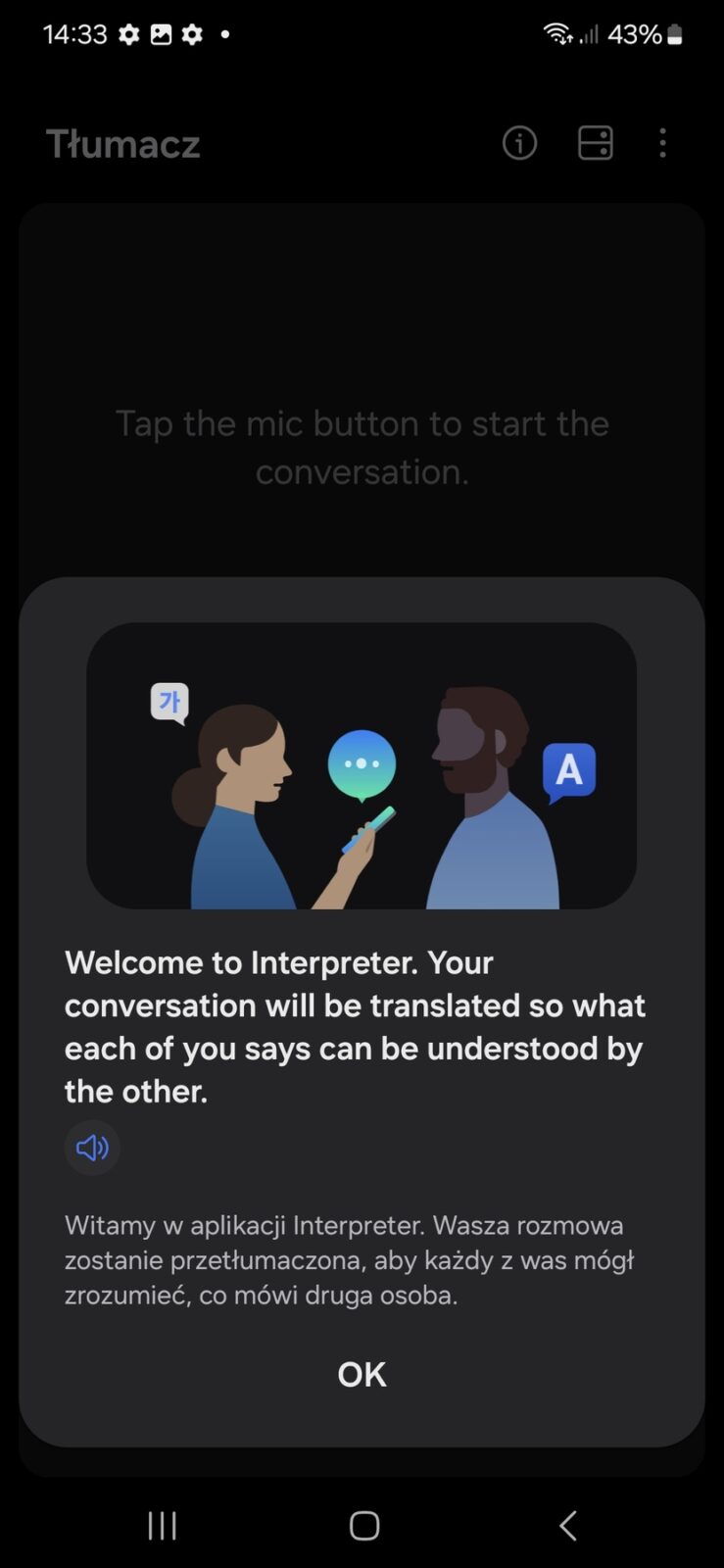 - Telefon (tłumacz w czasie rzeczywistym połączeń głosowych). Ma za zadanie tłumaczyć „na żywo” połączenia telefoniczne. Możemy wybrać jeden z 13 obsługiwanych języków (w tym polski) oraz wybrać, czy ma być tłumaczy w sposób tekstowy czy głosowy. Założenie jest super, niestety działanie pozostawia wiele do życzenia. Często pojawiają się błędy nie tylko w samym tłumaczeniu (to byłoby do zaakceptowania), ale też w identyfikacji wypowiadanych słów. Co więcej tłumacz czasami sam z siebie potrafi dodawać jakieś niezrozumiałe zdania do dialogu.