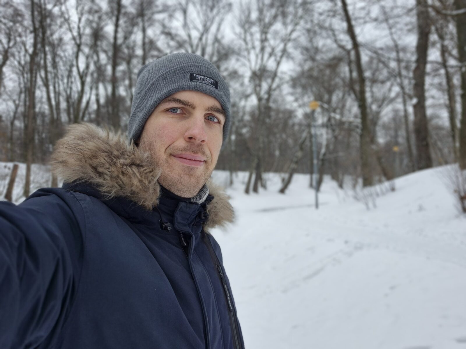 Przedni aparat do selfie posiada 12 Mpix matrycę i optykę o jasności f/2.2, czyli znowu tak samo jak przed rokiem. Jakość zdjęć uznaję za naprawdę niezłą i to nie tylko w trybie portretowym. Tu akurat mamy progres względem ubiegłorocznej edycji. Co prawda raczej tylko softwarowy, ale przecież liczy się końcowy efekt, prawda?