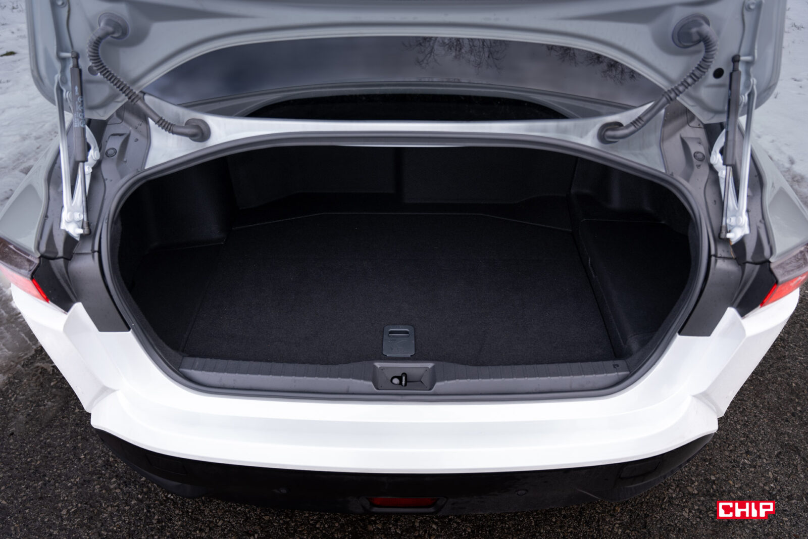 Bagażnik jest nieduży, ma 300 litrów pojemności, ale jest typowy dla sedana – szeroki i ustawny. Bez problemu można tu zmieścić kilka walizek.